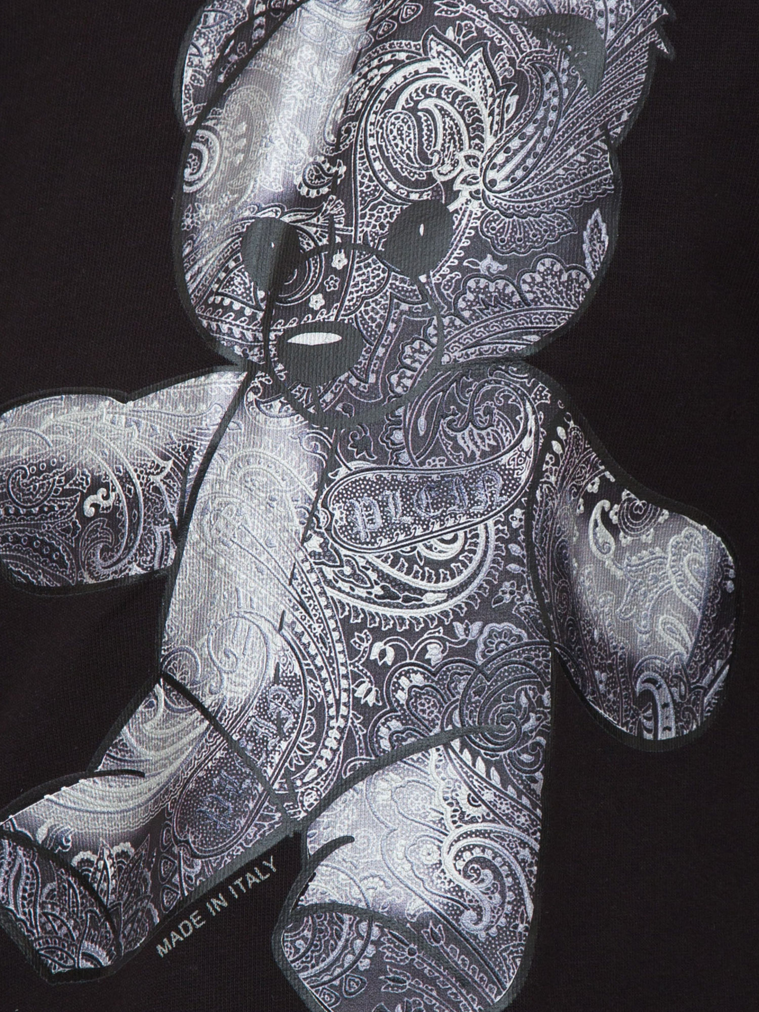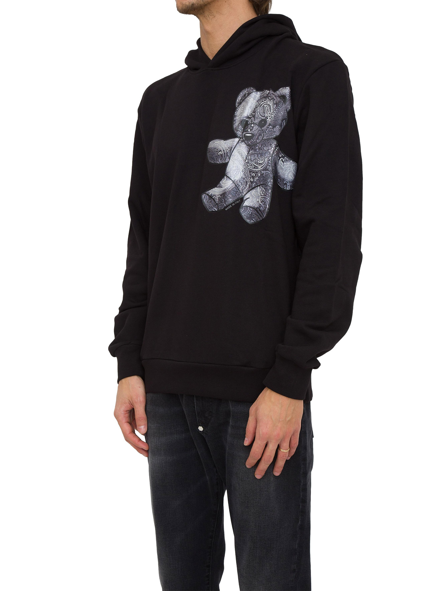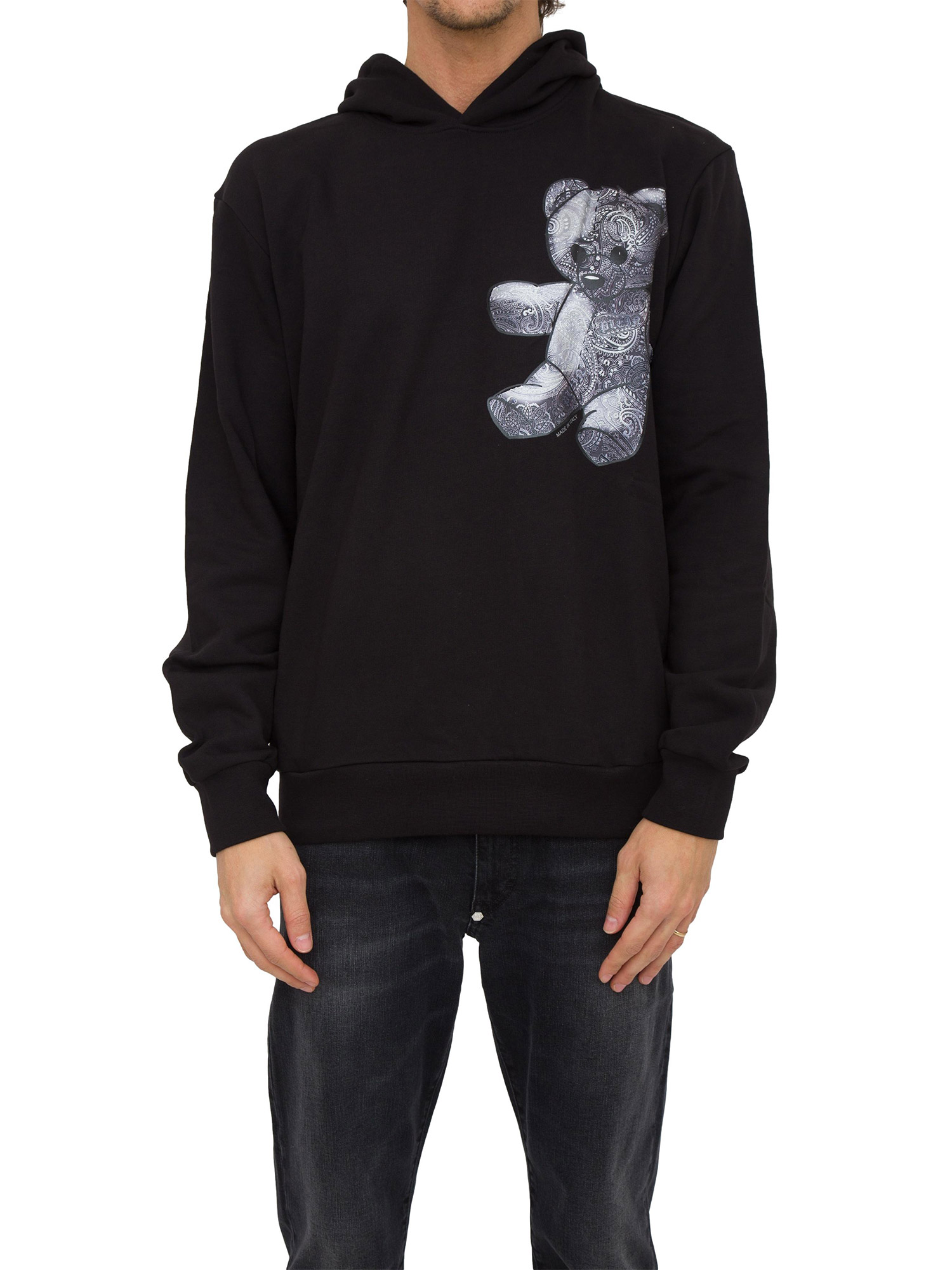 2. Felpa con cappuccio realizzata in cotone e impreziosita da dettagli originali, il punto cuore è caratterizzato dall'iconico Teddy Bear stampato con motivo Paisley, PP Hexagon su patch di pelle saffiano cucito sulla sommità del cappuccio, due tasche a filetto, polsi e fondo smacchinati a costina e vestibilità over.