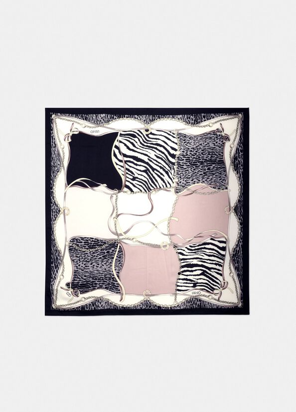 Foulard Liu Jo donna realizzato in morbido tessuto stampato con motivo patchwork animalier con logo. Misure: 90 x 90 cm.