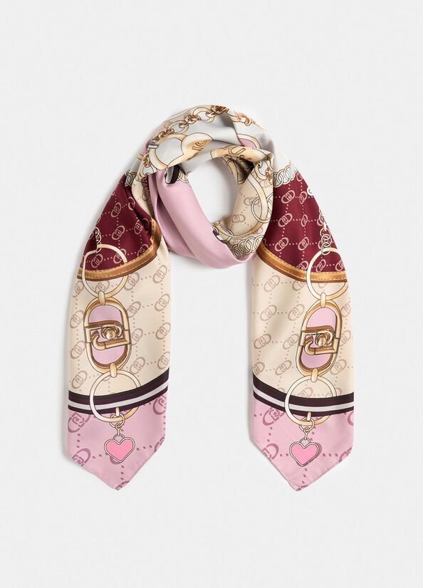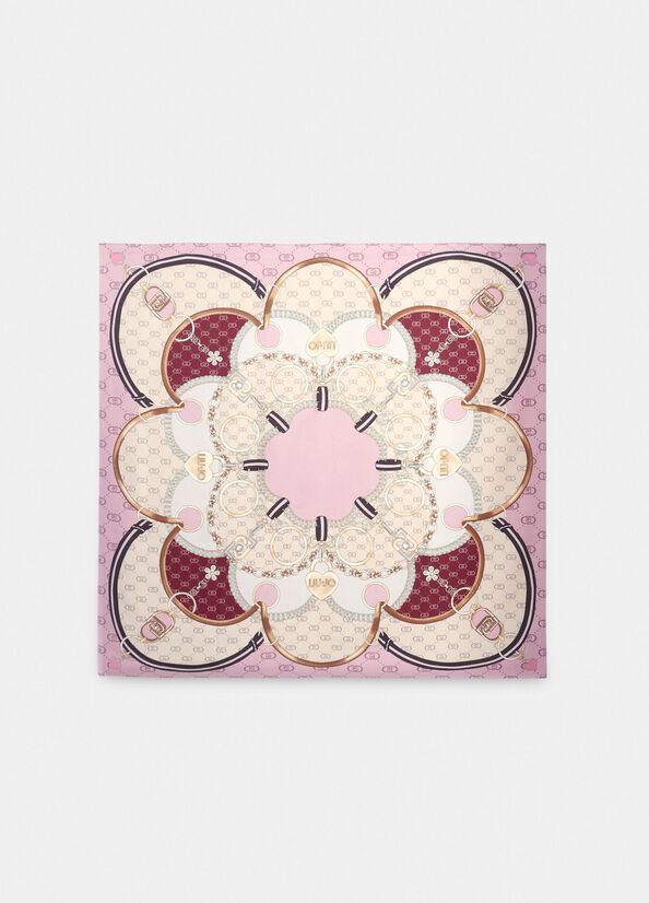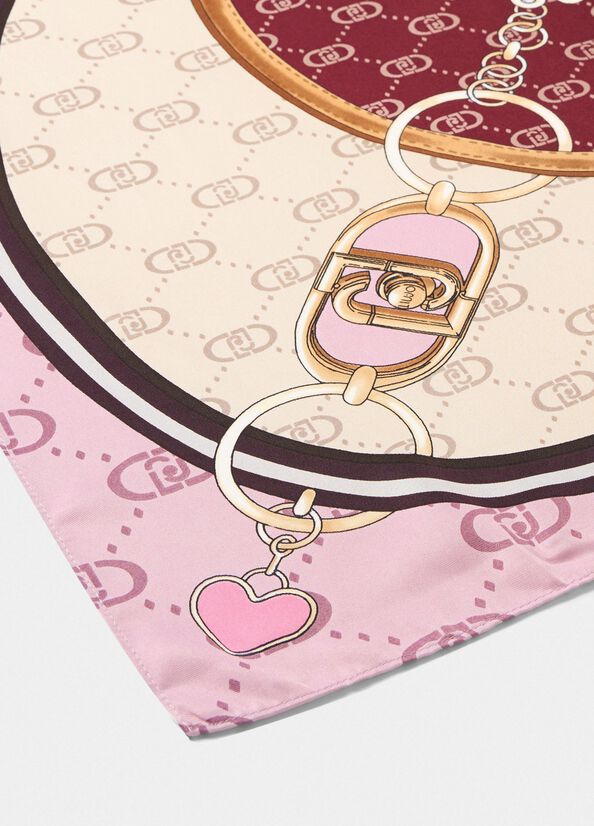 Foulard Liu Jo rosa con stampa grafica logo monogram