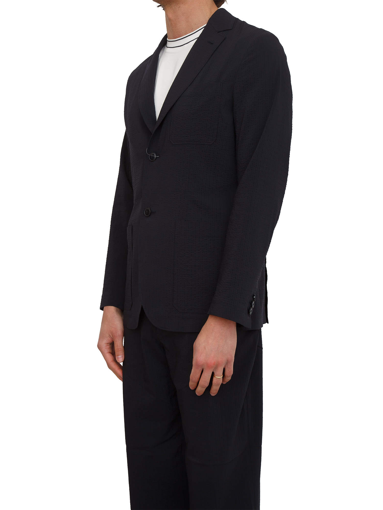Un'ode alla nonchalance sofisticata, questa giacca Armani Exchange uomo ridefinisce l'eleganza disinvolta. Il lyocell stretch scivola sulla pelle come seta fluida, drappeggiandosi in linee morbide e rilassate. Un capo versatile, perfetto per un look ricercato. Il modello è alto 1.90m e indossa la taglia 36.