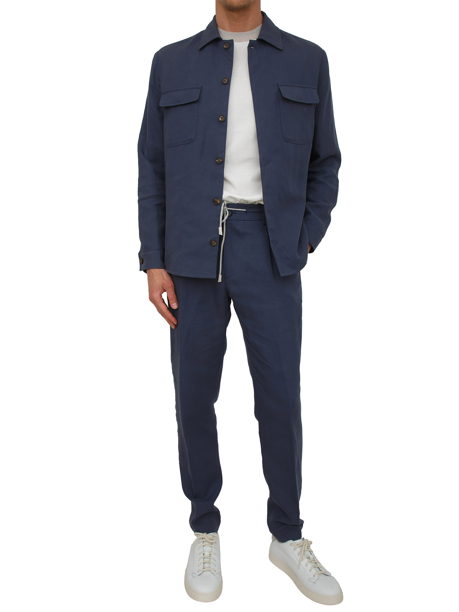 Giacca camicia Eleventy uomo in lino e cotone blu