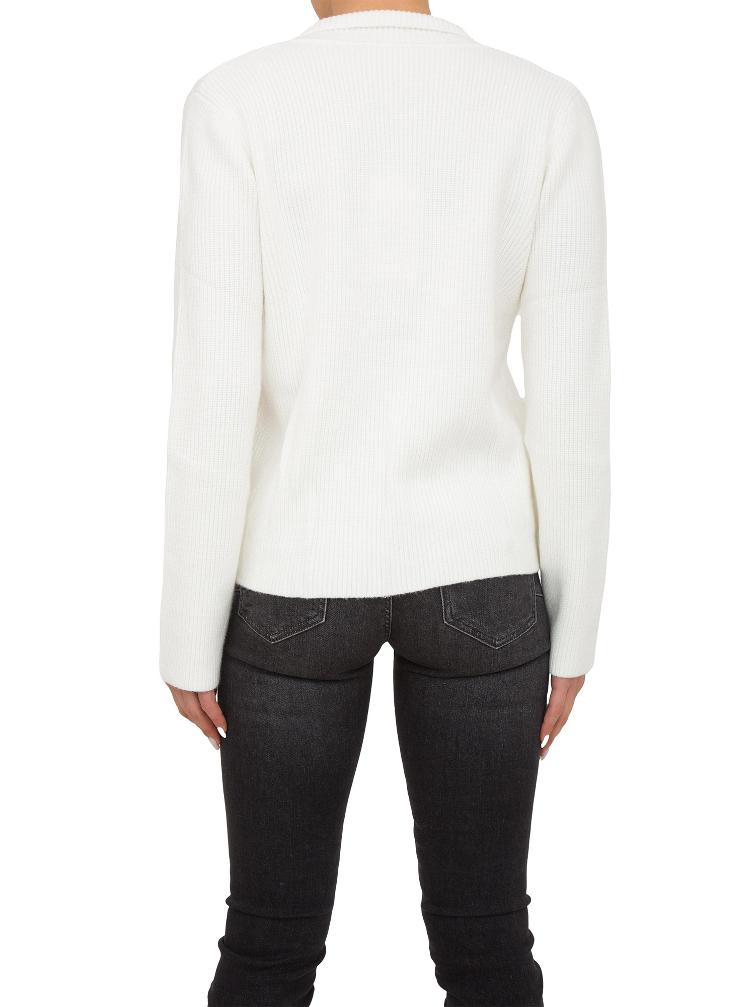 Maglia Kocca manica lunga donna in misto viscosa. La particolarità del capo [and]egrave; il suo taglio giacca doppiopetto con scollo rever.
