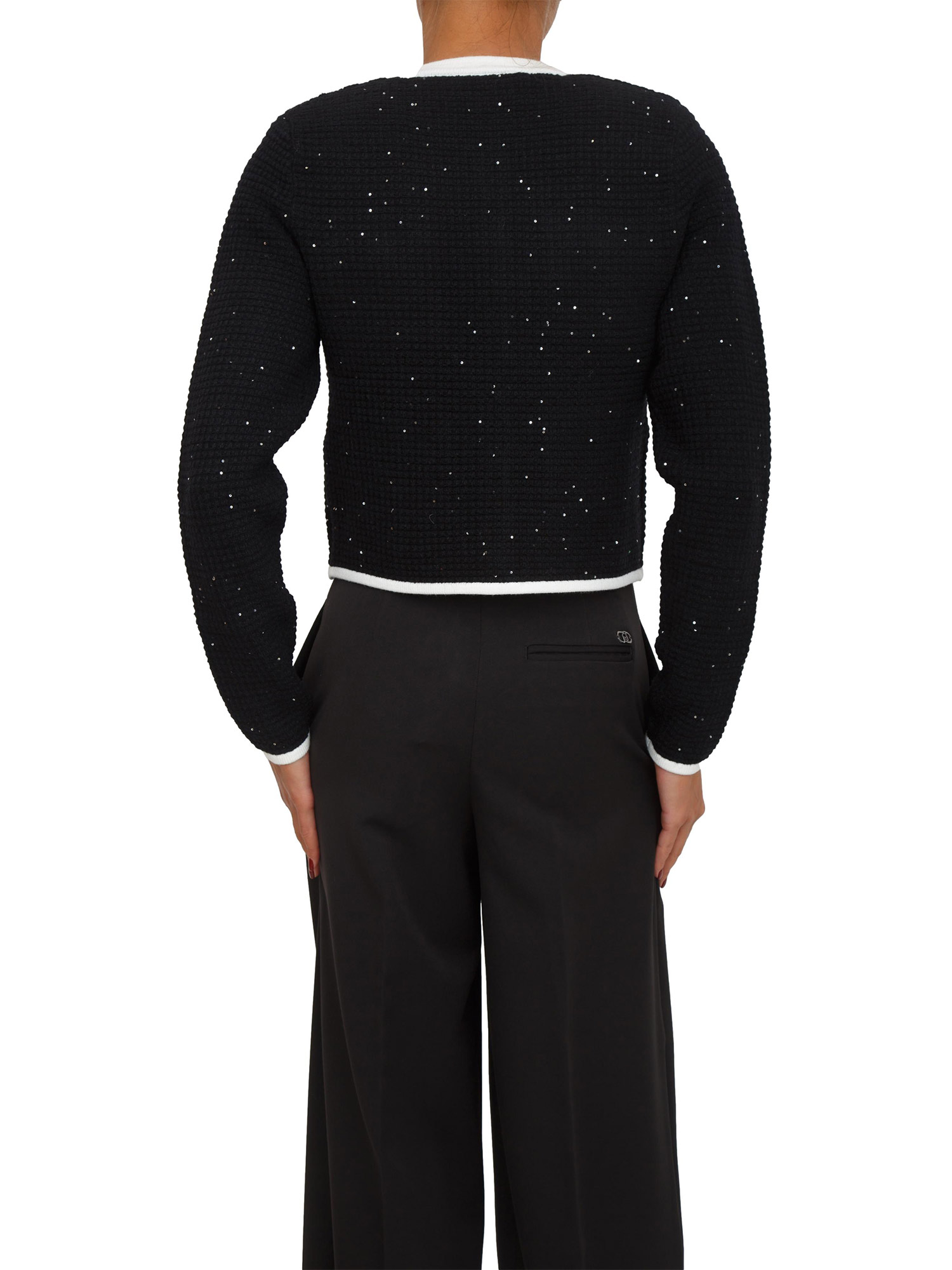 Giacca maglia punto waffle Liu Jo in misto viscosa nera con strass