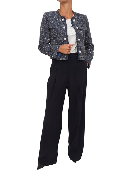 Blazer in tela misto lana stretch Marella, linea semiaderente, modellata con pince, collo a rever, maniche lunghe, chiusura monopetto, tasche con patta e modello foderato.