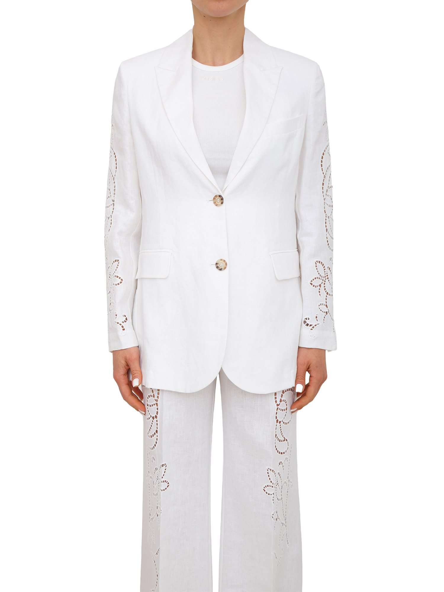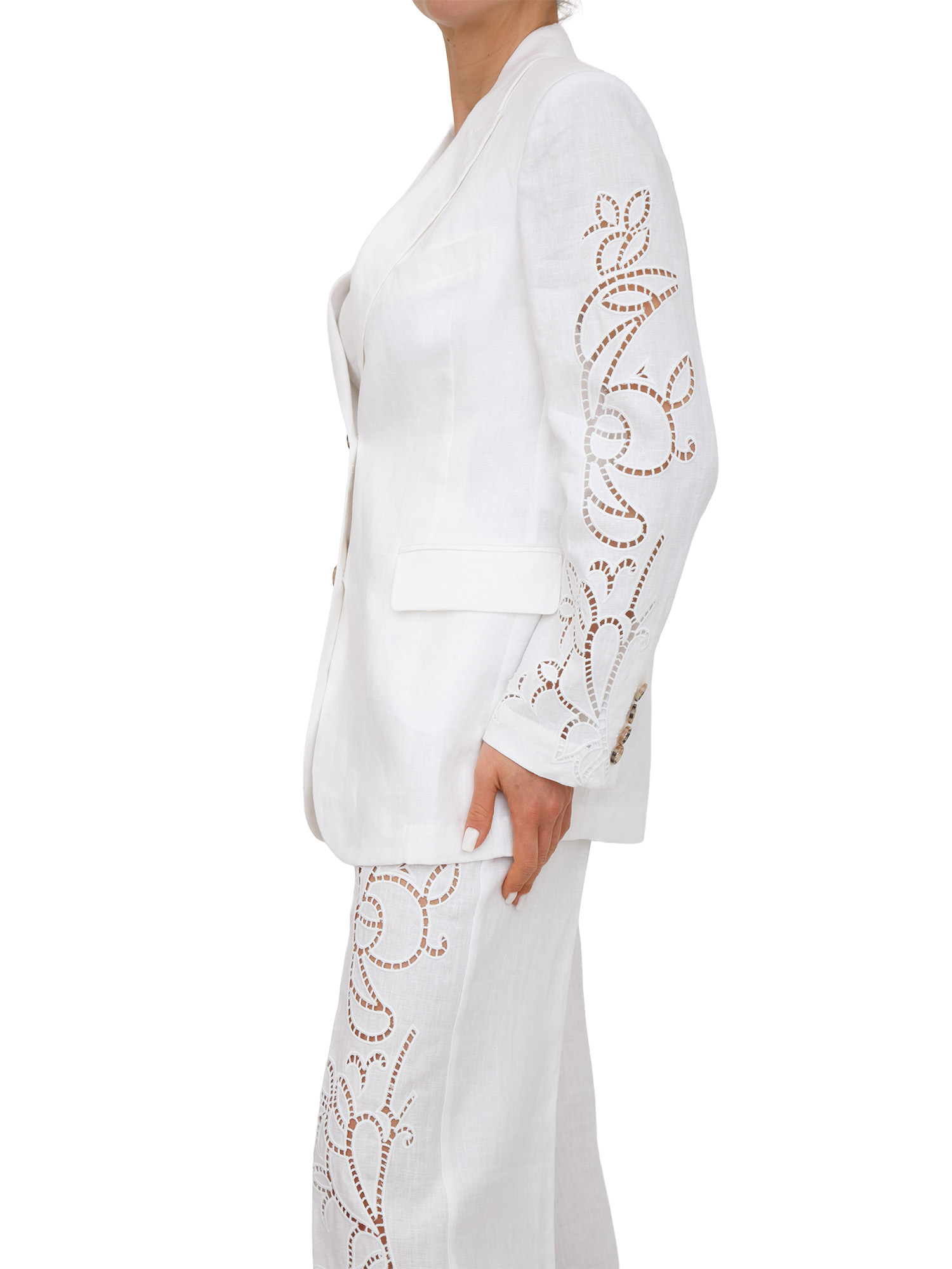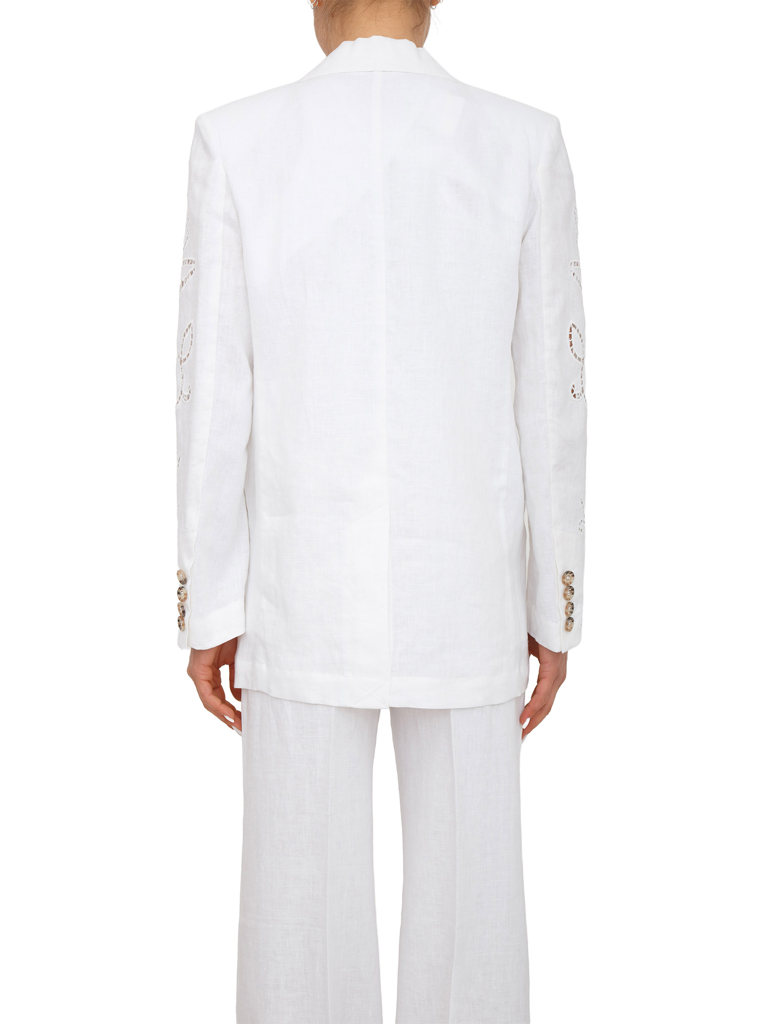 Giacca monopetto Ermanno Firenze in puro lino bianco e ricami