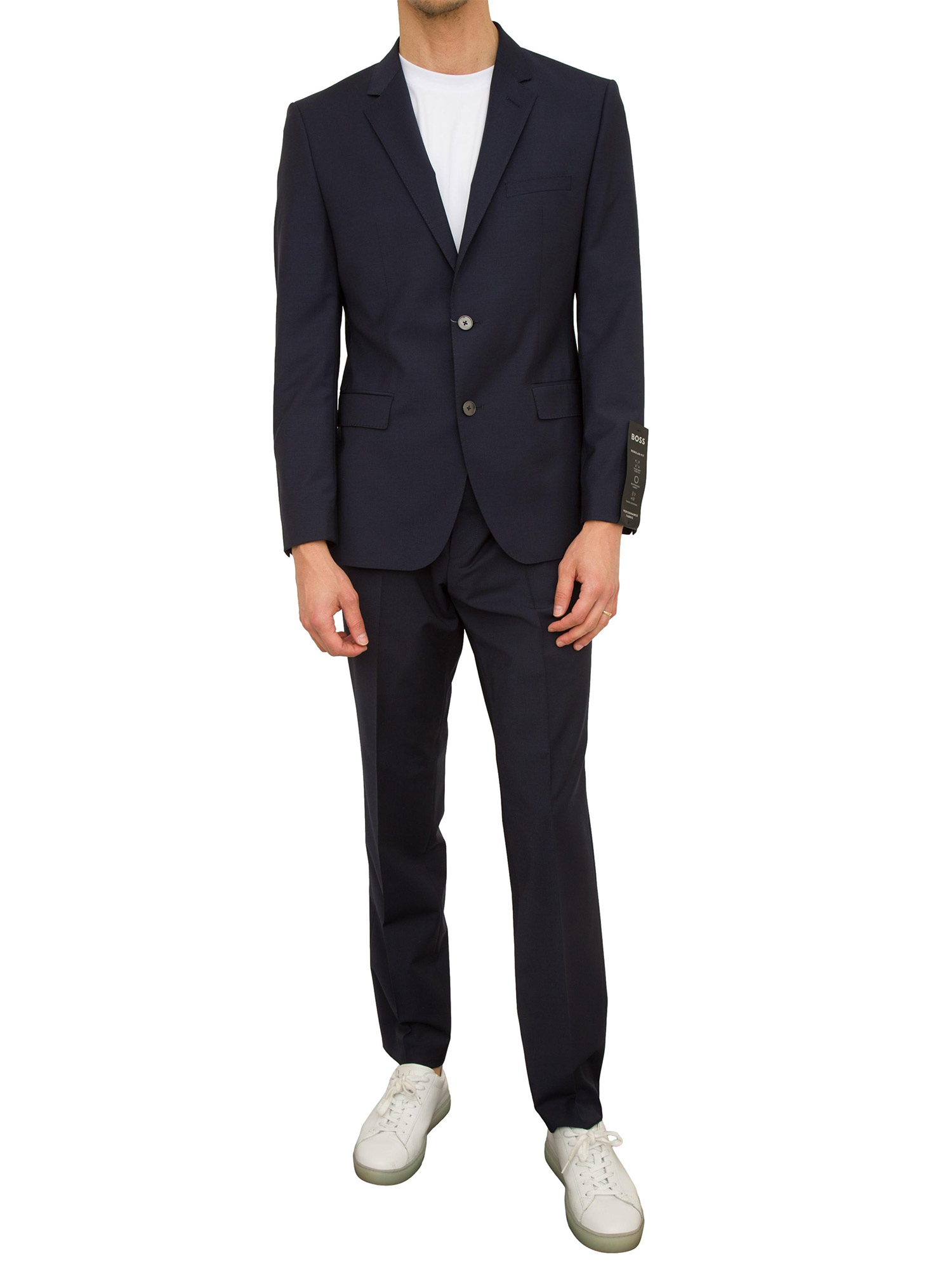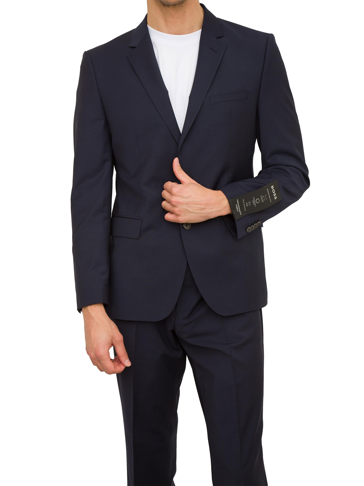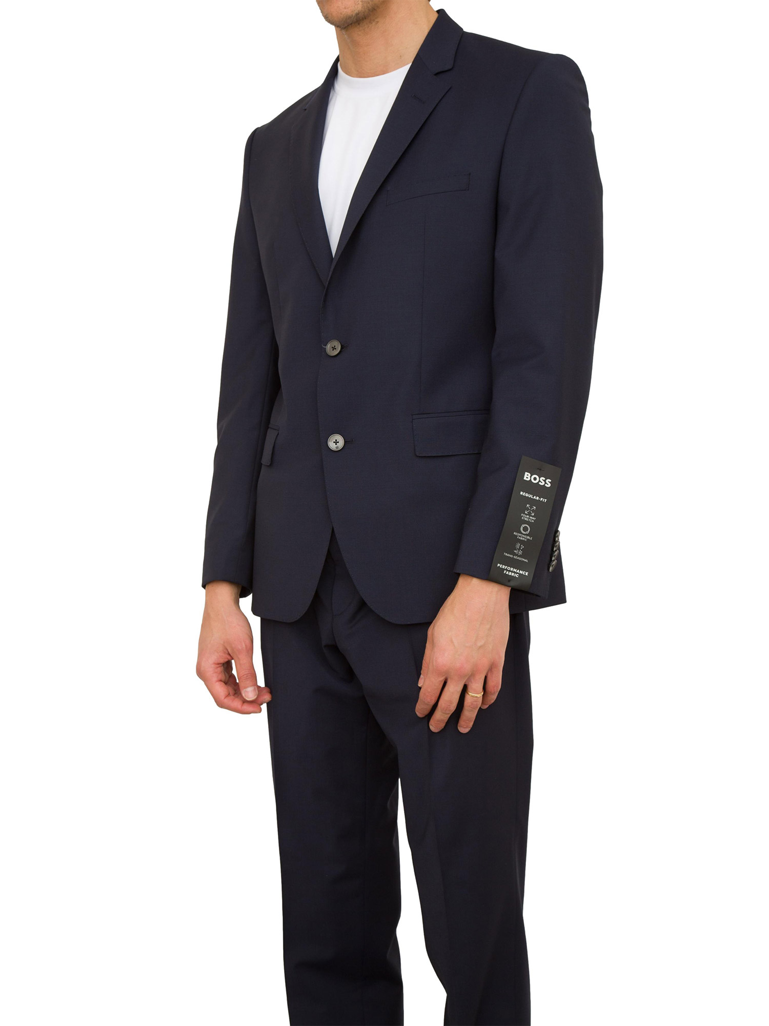 Una giacca senza tempo regular fit BOSS Uomo in tessuto elasticizzato traspirante con fodera interna esclusiva. Revers classici.Il modello è alto 1.90m e indossa la taglia 50.