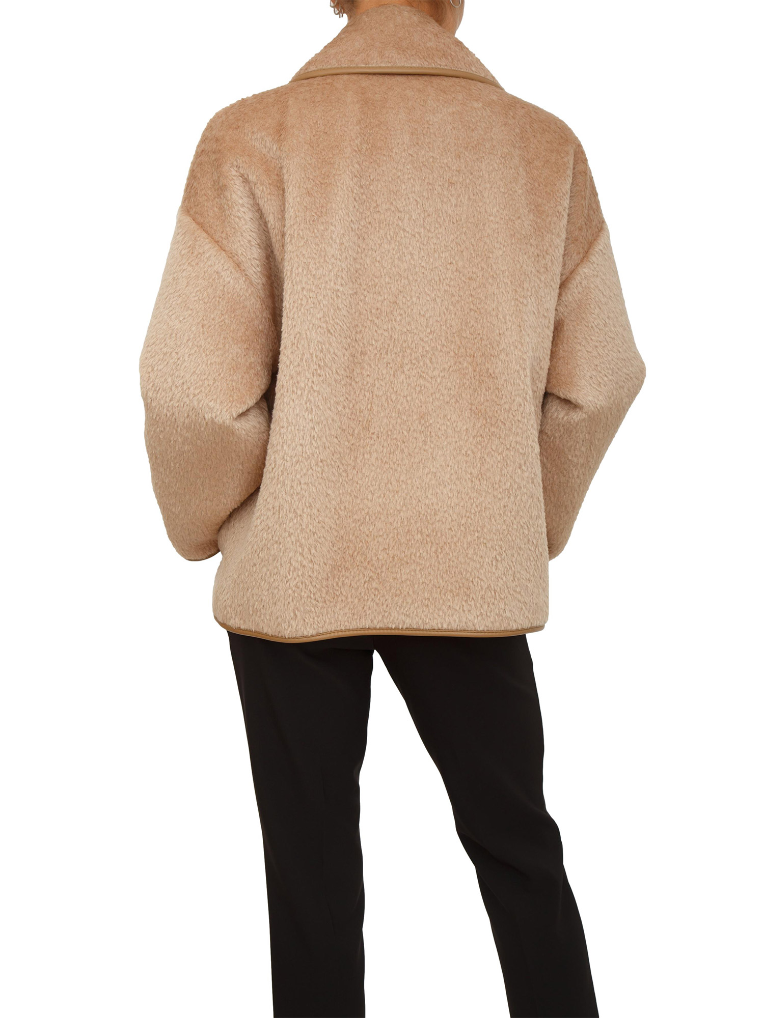 Giaccone Vadet Max Mara realizzato in misto alpaca spazzolato con vestibilità boxy e dettagli in pelle. Dotato di chiusura frontale con bottoni in corno, tasche a filo ed interno trapuntato. Stiloso e confortevole. La modella è alta 1.72 e indossa la taglia 42.