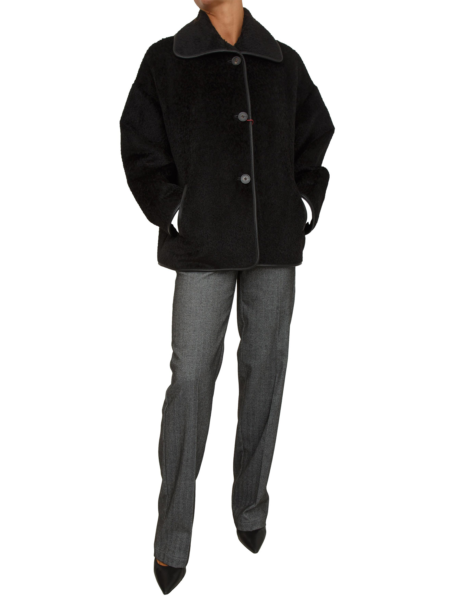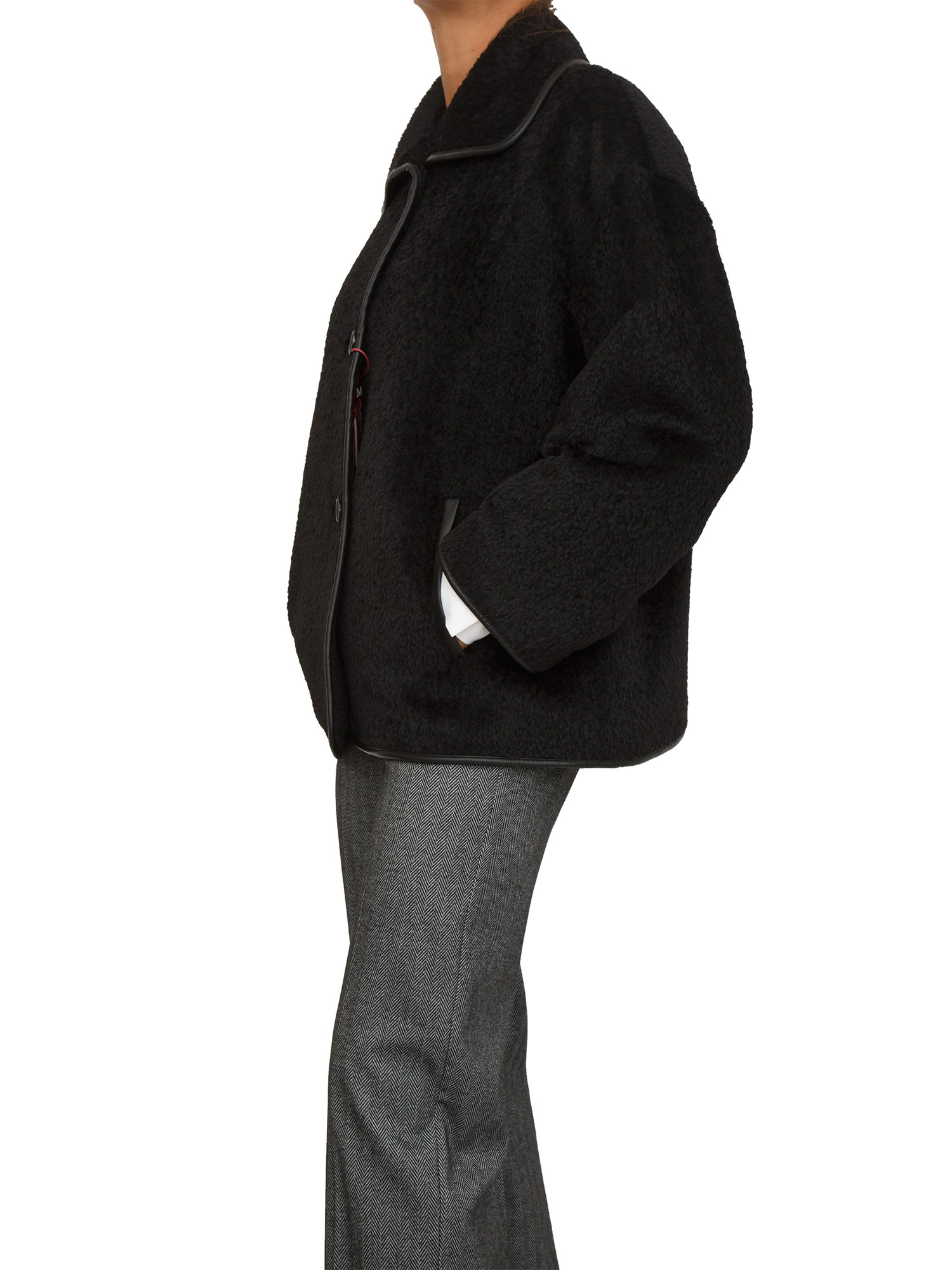 Giaccone Vadet Max Mara realizzato in misto alpaca spazzolato con vestibilità boxy e dettagli in pelle. Dotato di chiusura frontale con bottoni in corno, tasche a filo ed interno trapuntato. Stiloso e confortevole. La modella è alta 1.72 e indossa la taglia 42.