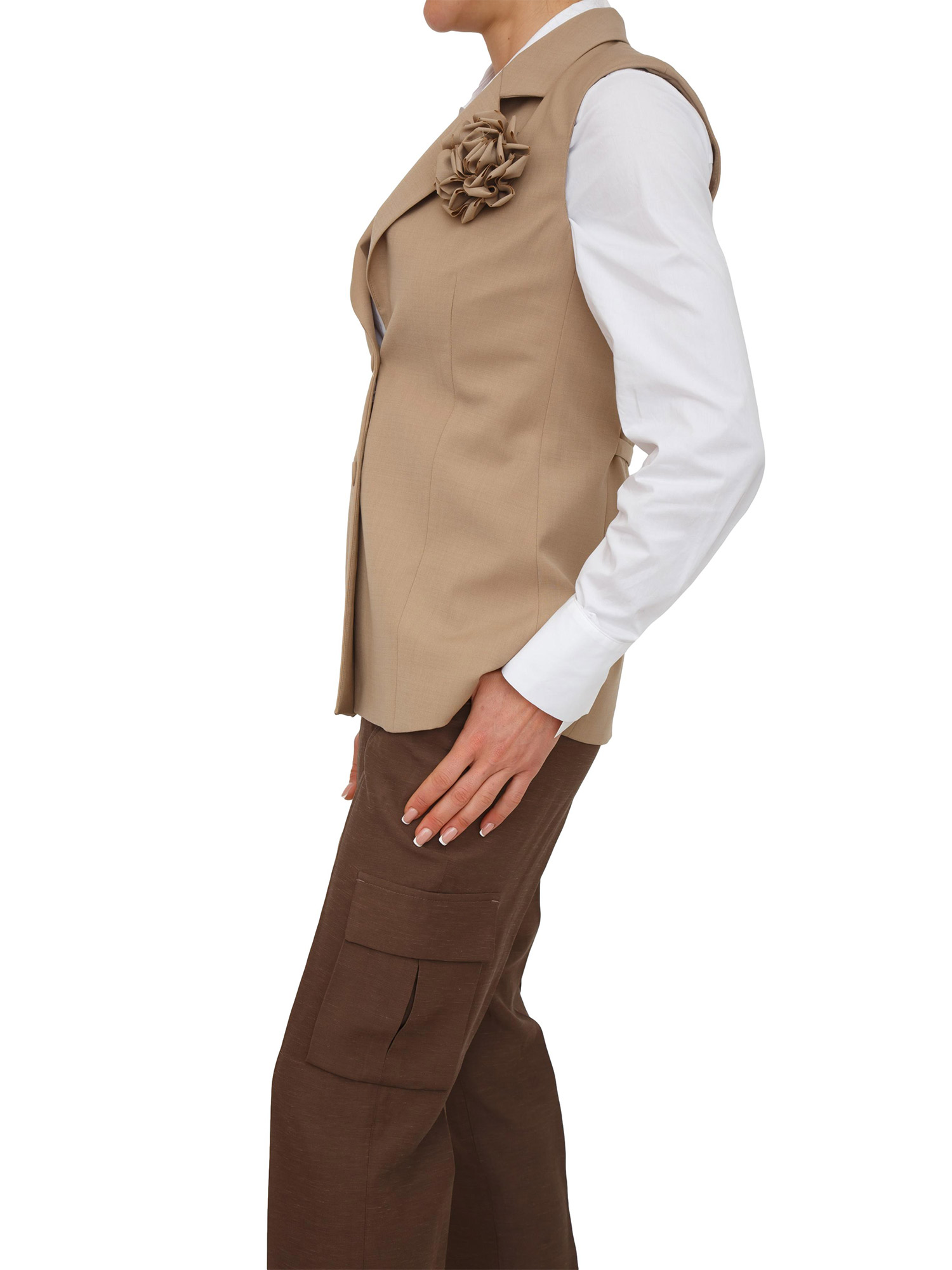 Gilet blazer Blugirl in fresco lana cammello con spilla rosa