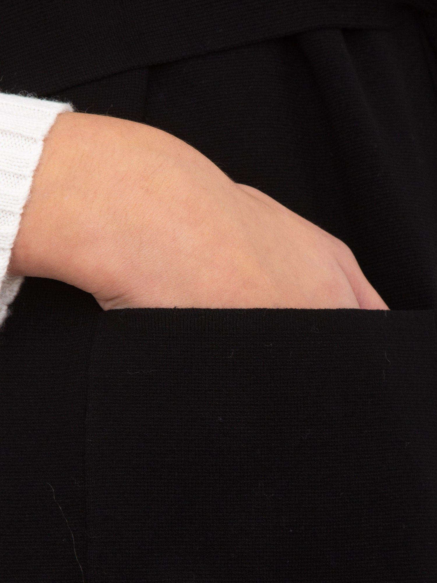 Gilet donna Abete Max Mara modello lungo con cintura da annodare in vita per evidenziare la silhouette. Realizzato in filato di viscosa stretch a punto tessuto con linea dritta e tasche applicata sul davanti. La modella è alta 1.77 e indossa la taglia S.