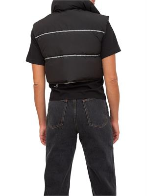 Gilet GCDS imbottito realizzato in nylon a collo alto. Chiusura frontale con bottoni a pressione. Il capo è caratterizzato da due righe di strass applicate a caldo sul davanti e sul dietro e dal logo GCDS che crea un attraente effetto di contrasto. Fit cropped.