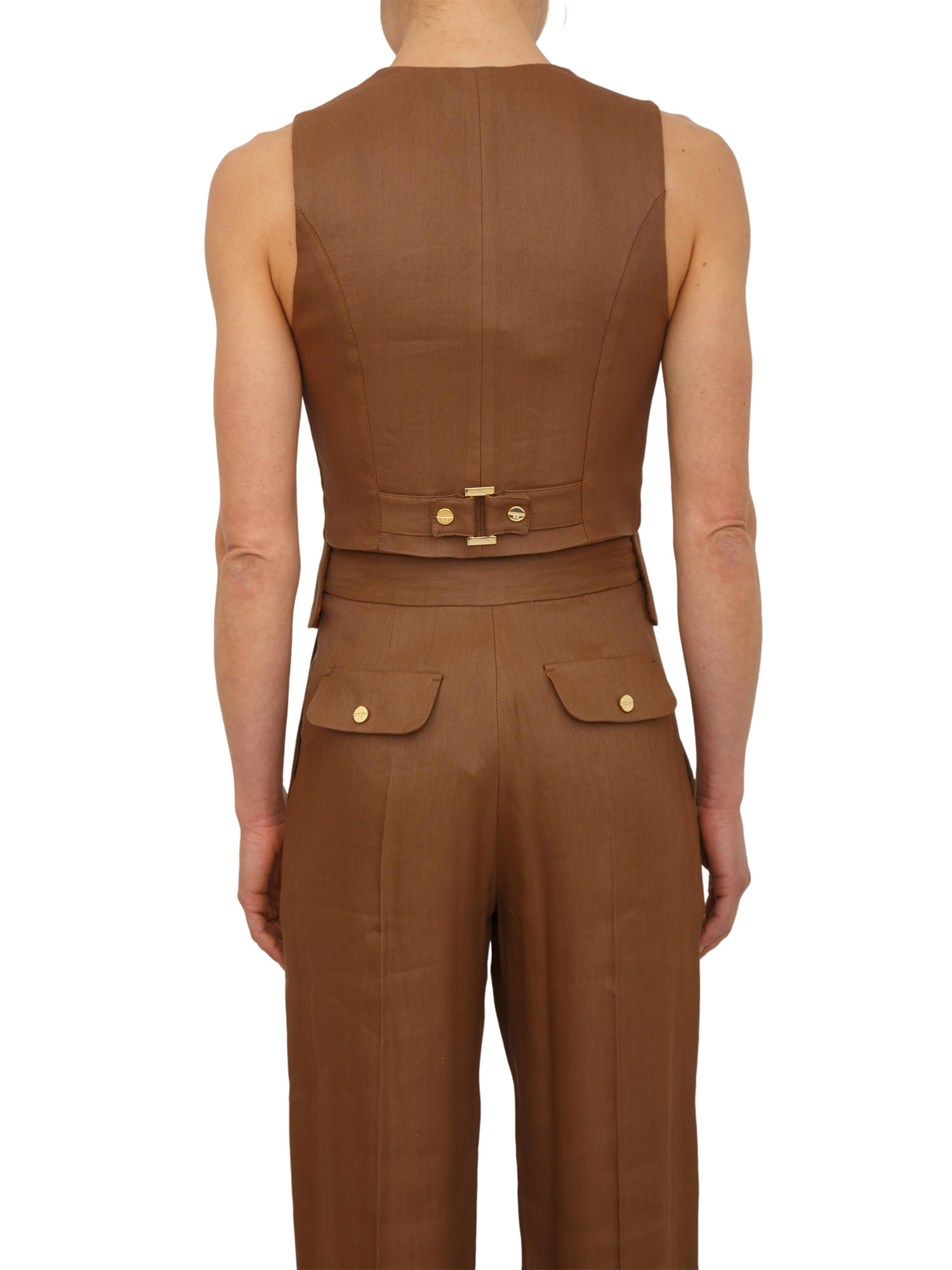 Gilet Elisabetta Franchi in misto lino marrone