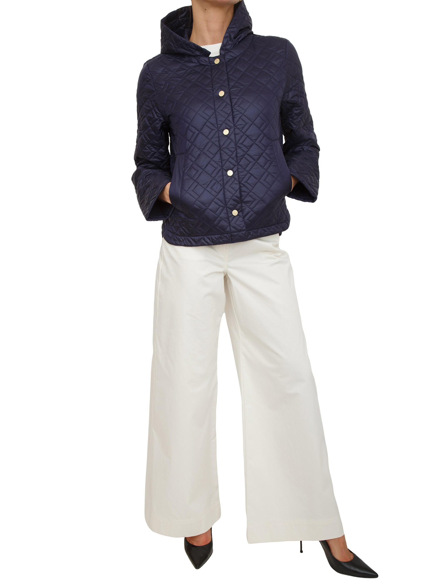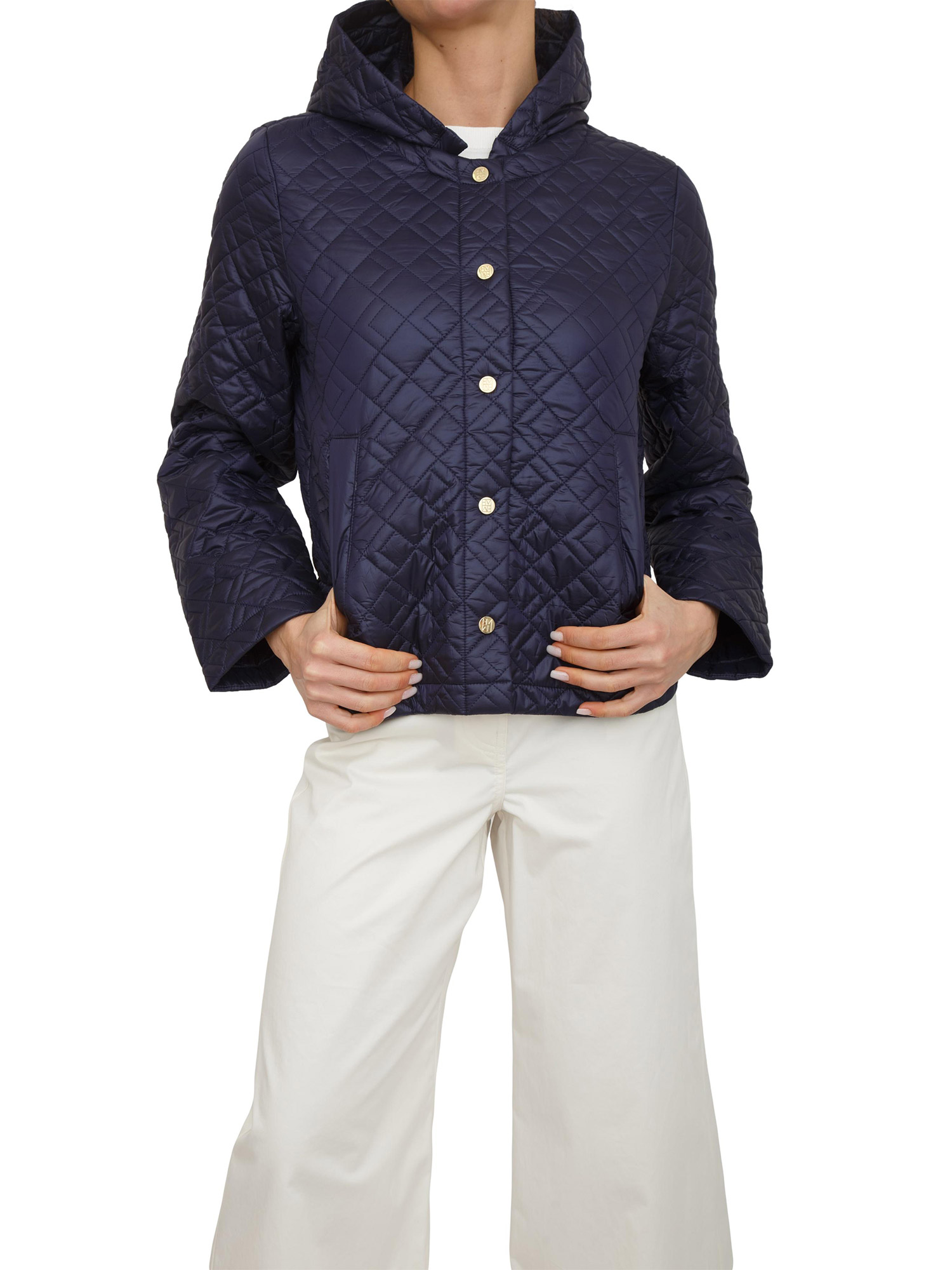 Uno dei grandi must dei mesi primaverili? Il giubbino anti goccia Emmpiroga di Emme Marella con leggera imbottitura. Comodo, con cappuccio e facile da indossare anche sopra una giacca quando il meteo è incerto. Realizzato in tessuto tecnico downproof antigoccia con motivo trapuntatura geometrica.