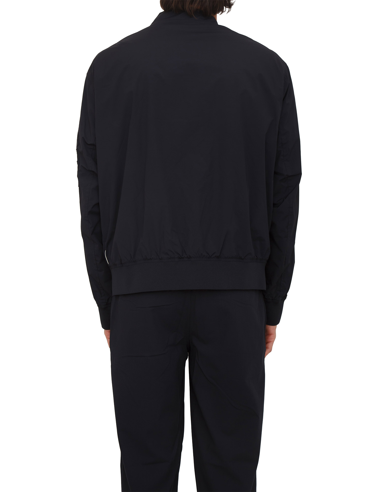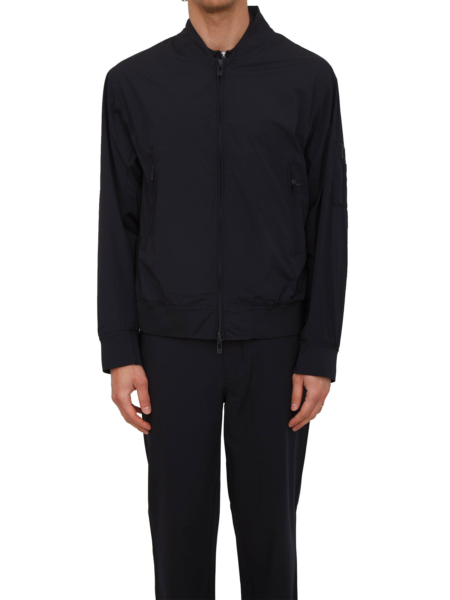 Giubbino Armani Exchange uomo realizzato in tessuto elasticizzato dalla linea elegante, materiali leggeri e colore trendy. Relaxed fit con chiusura zip, tasche laterali, tasca sulla manica e lavorazione a costine sui fondi. Il modello è alto 1.90m e indossa la taglia L.