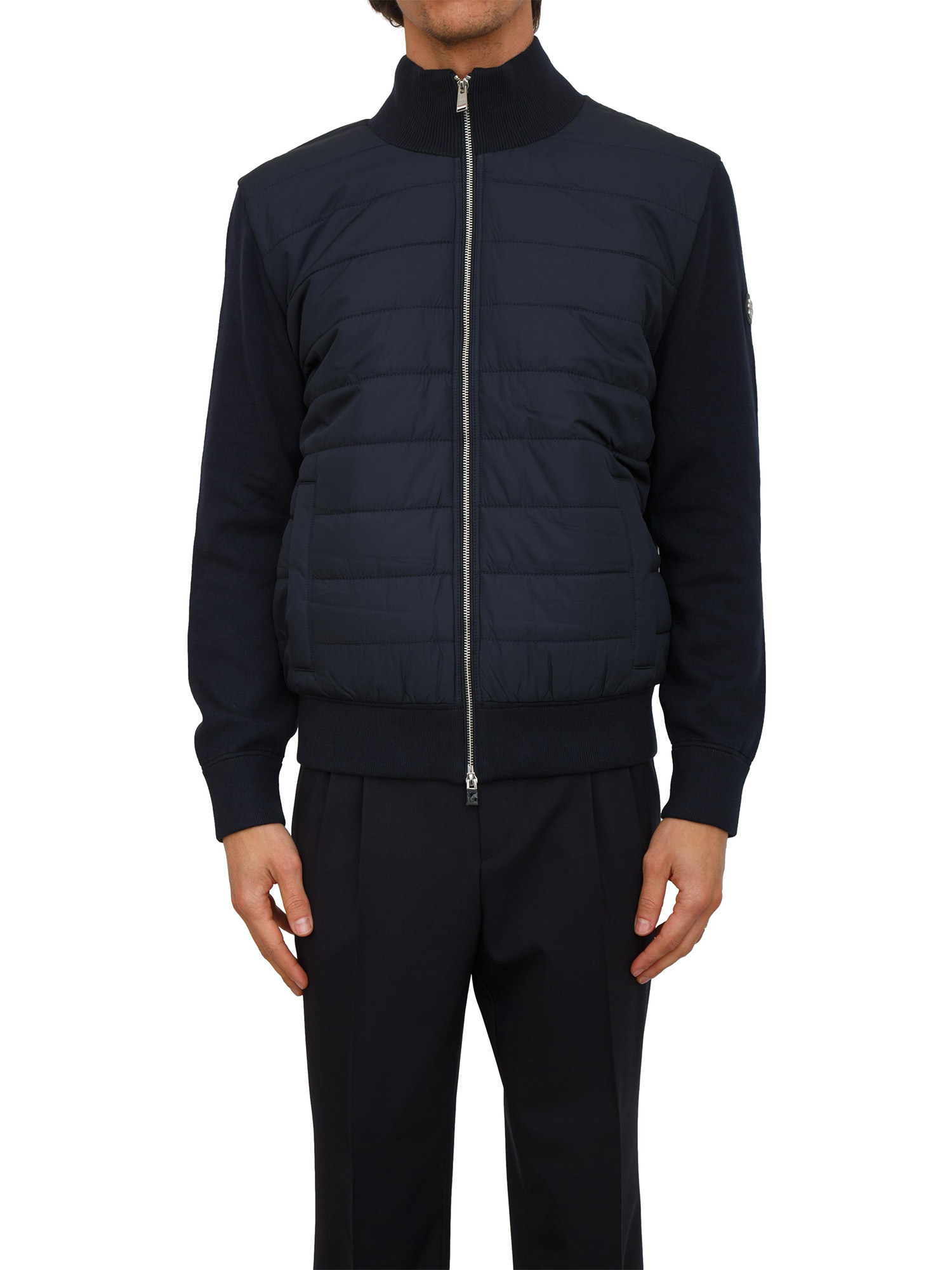 Giubbino BOSS Uomo realizzato in morbido misto lana e cotone con imbottitura sulla parte anteriore effetto gilet e maniche e retro in maglia. Perfetto per i look grintosi a strati. Il modello è alto 1.90m e indossa la taglia L.