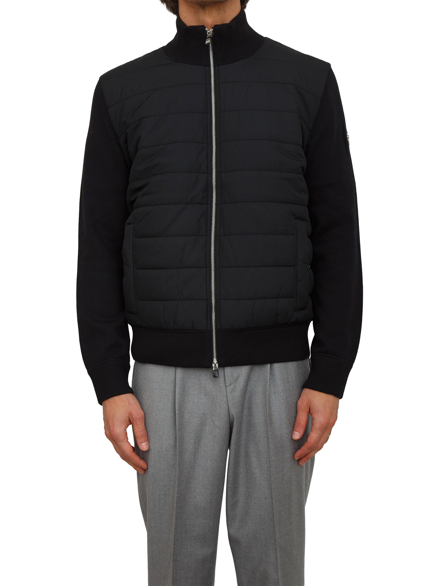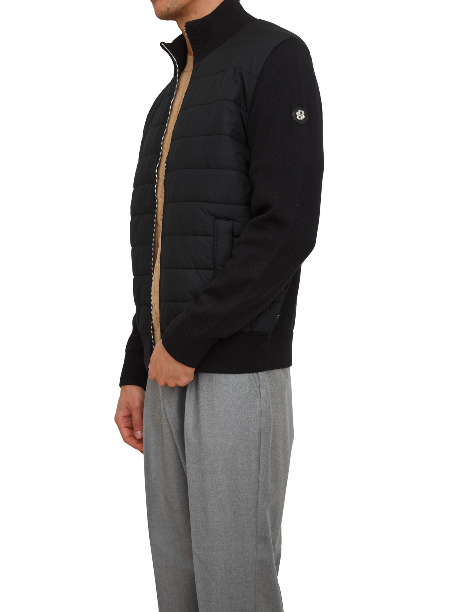 Giubbino BOSS Uomo realizzato in morbido misto lana e cotone con imbottitura sulla parte anteriore effetto gilet e maniche e retro in maglia. Perfetto per i look grintosi a strati. Il modello è alto 1.90m e indossa la taglia L.