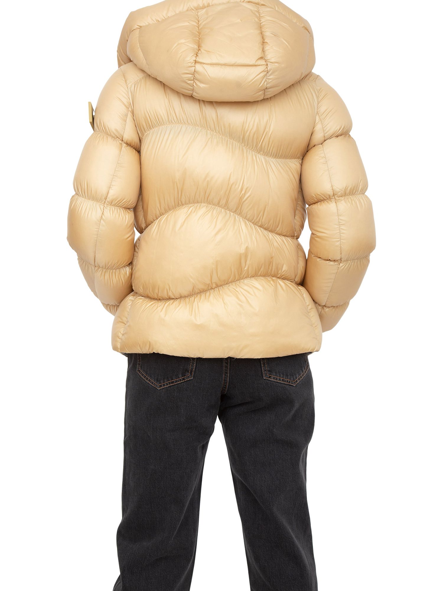 Piumino con cappuccio ADD , con chiusura frontale con zip in metallo a doppio cursore e patta copri zip con bottoni automatici. Due tasche laterali con zip in metallo.