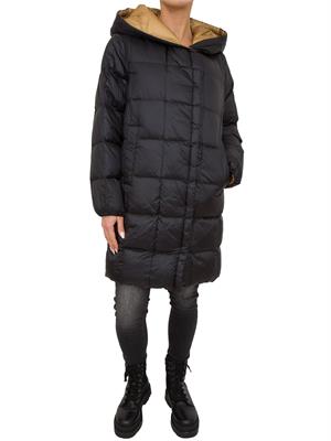 Piumino reversibile Seventy Venezia, con design double face e taglio lungo, stile doppiopetto con snaps, caratterizzato da maxi trapunta quadrata e cappuccio scialle.