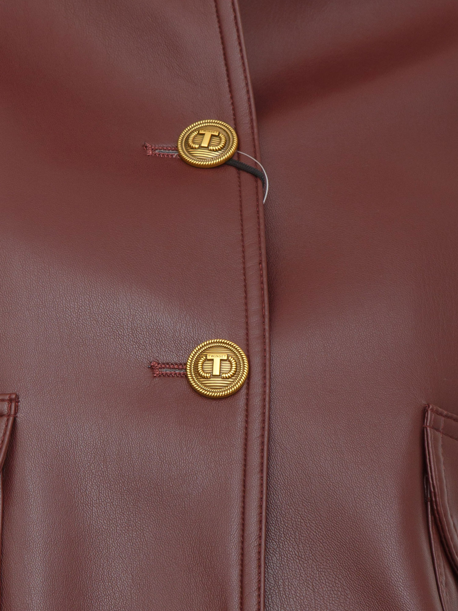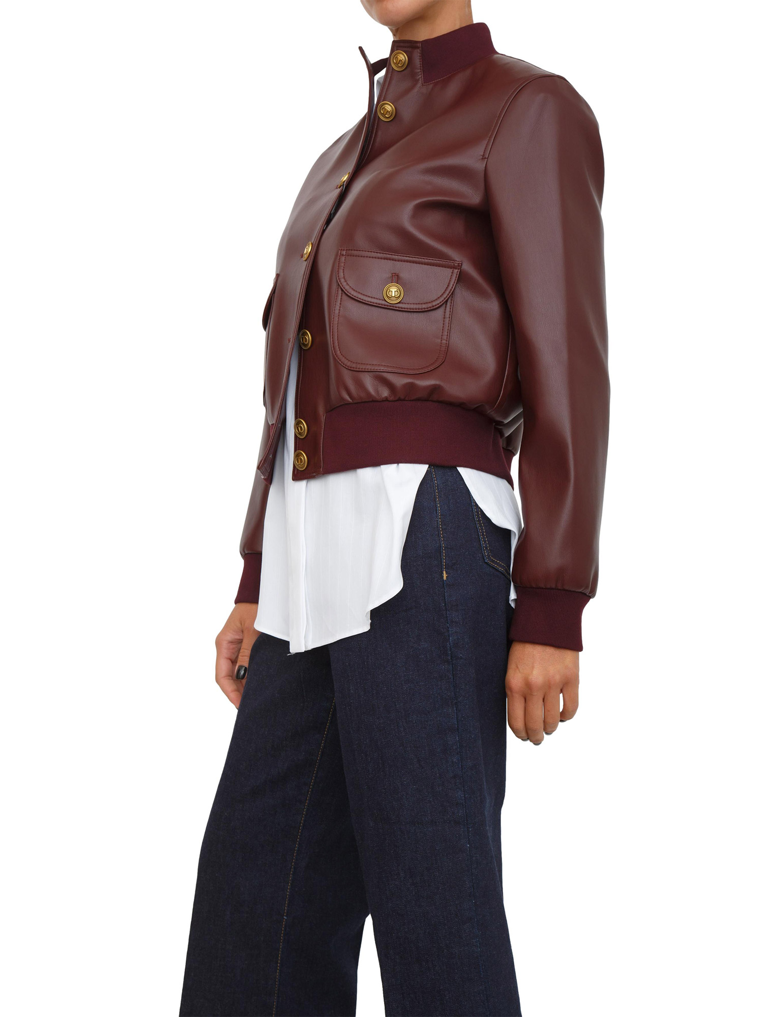 Giubbino Twinset effetto pelle bordeaux con bottoni oro logati