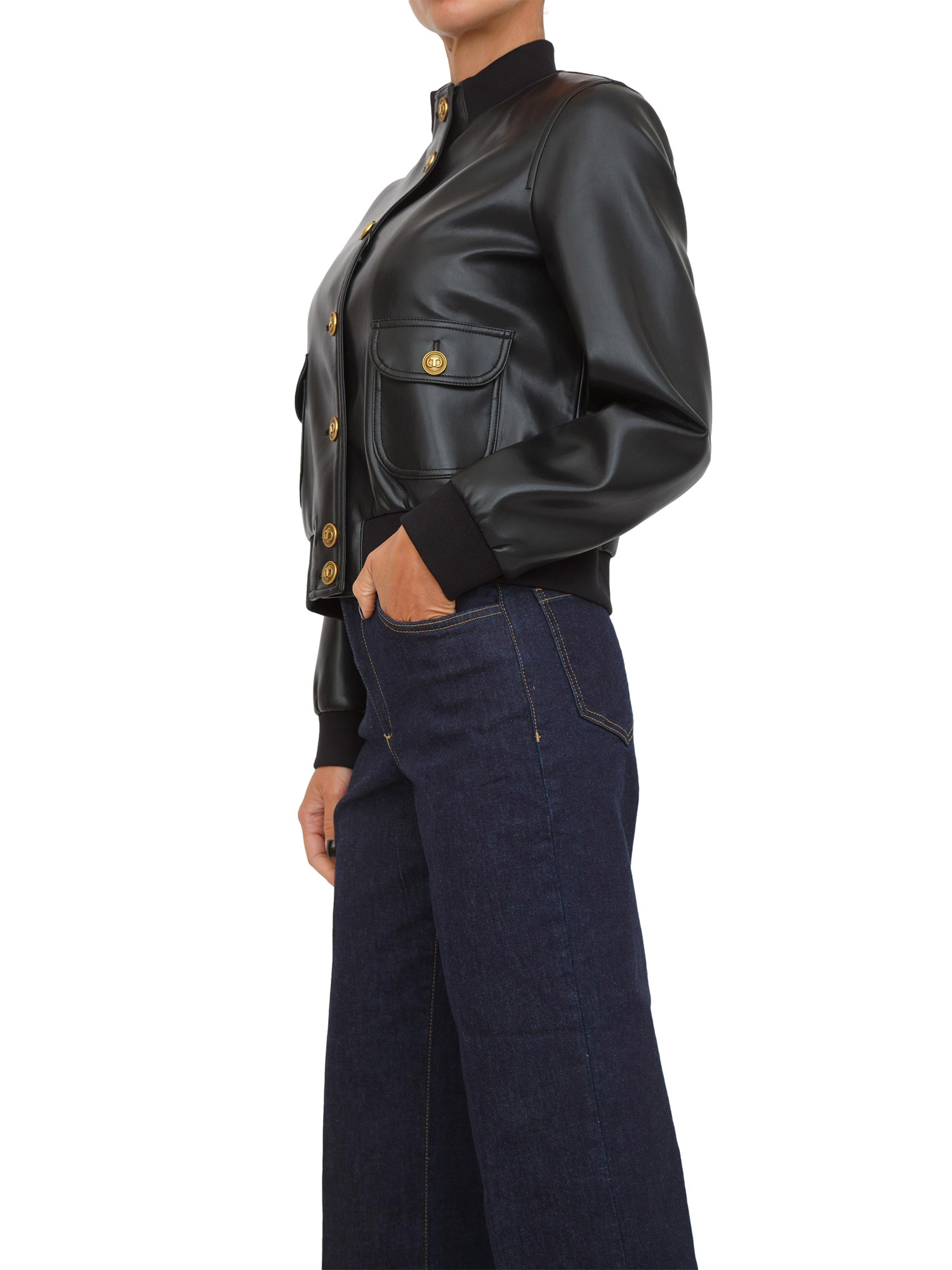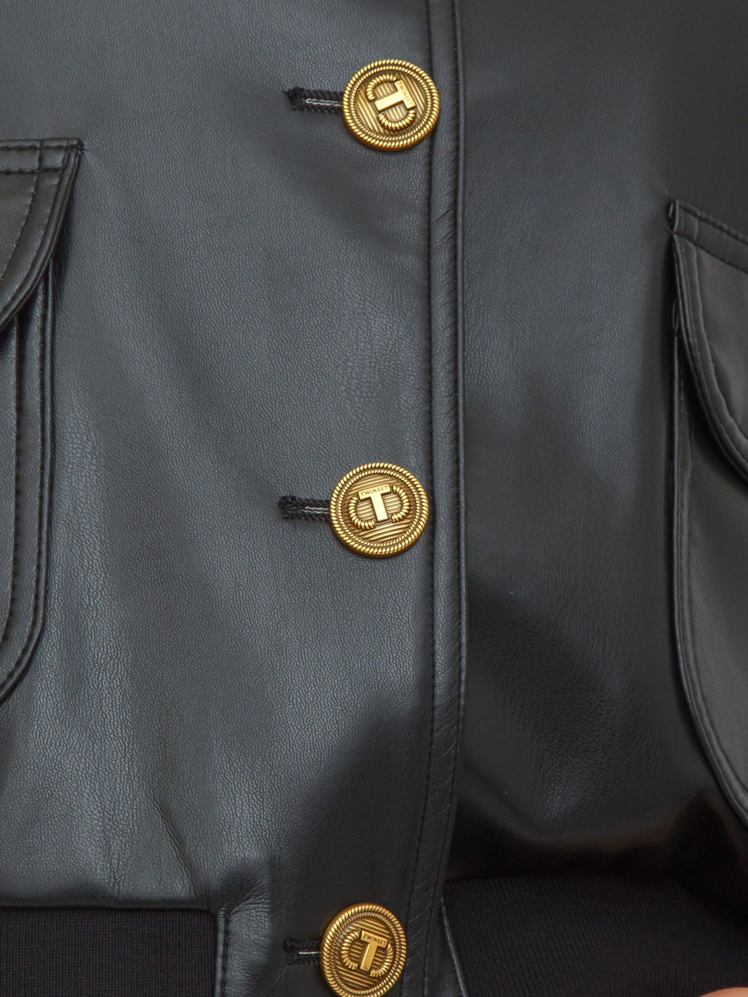 Giubbino Twinset effetto pelle nero con bottoni oro logati