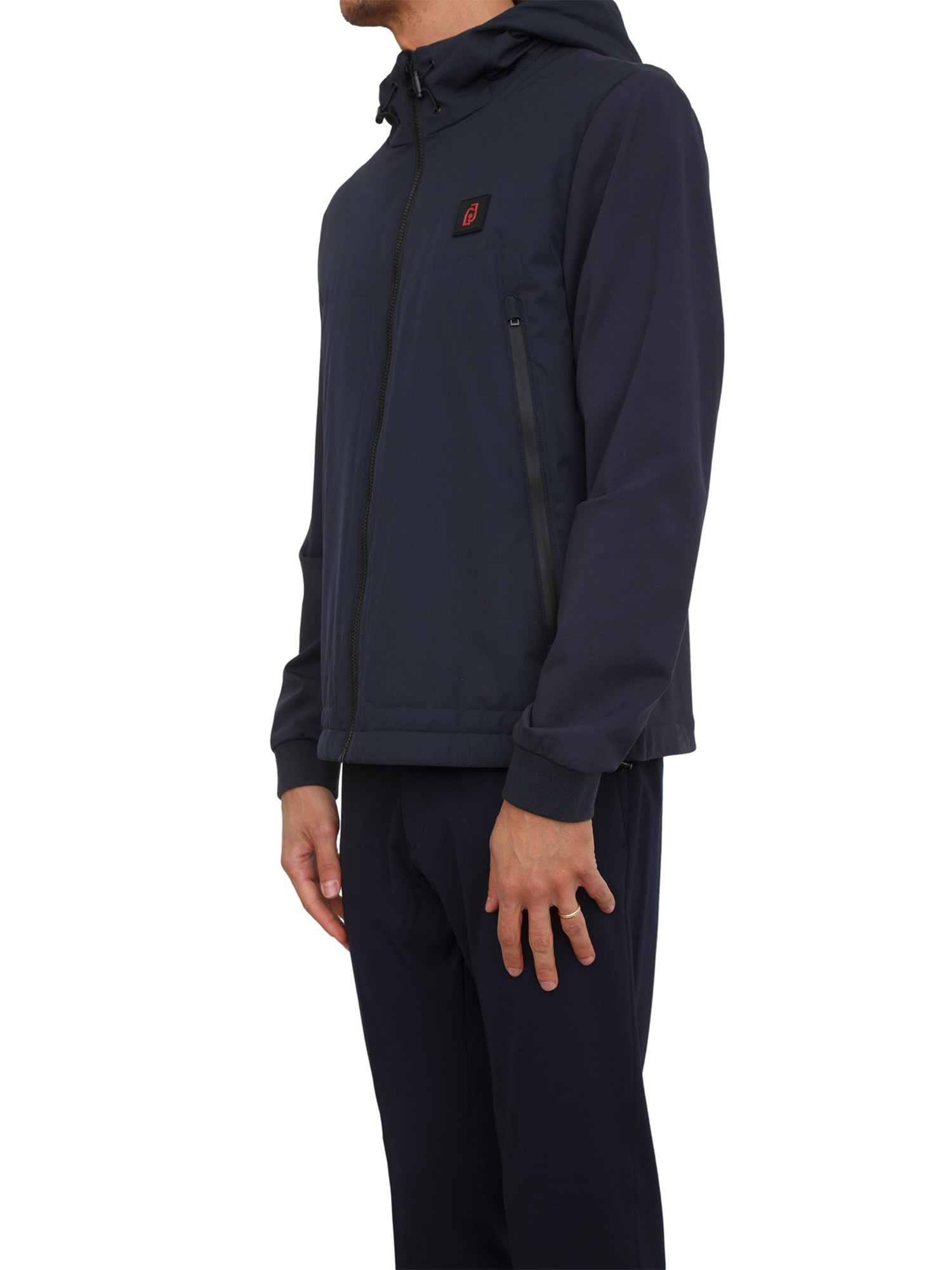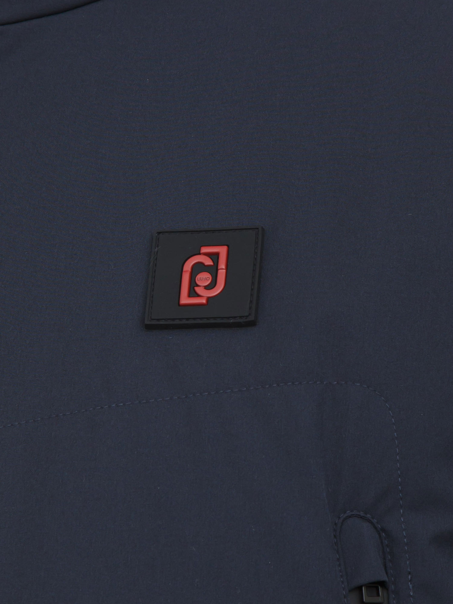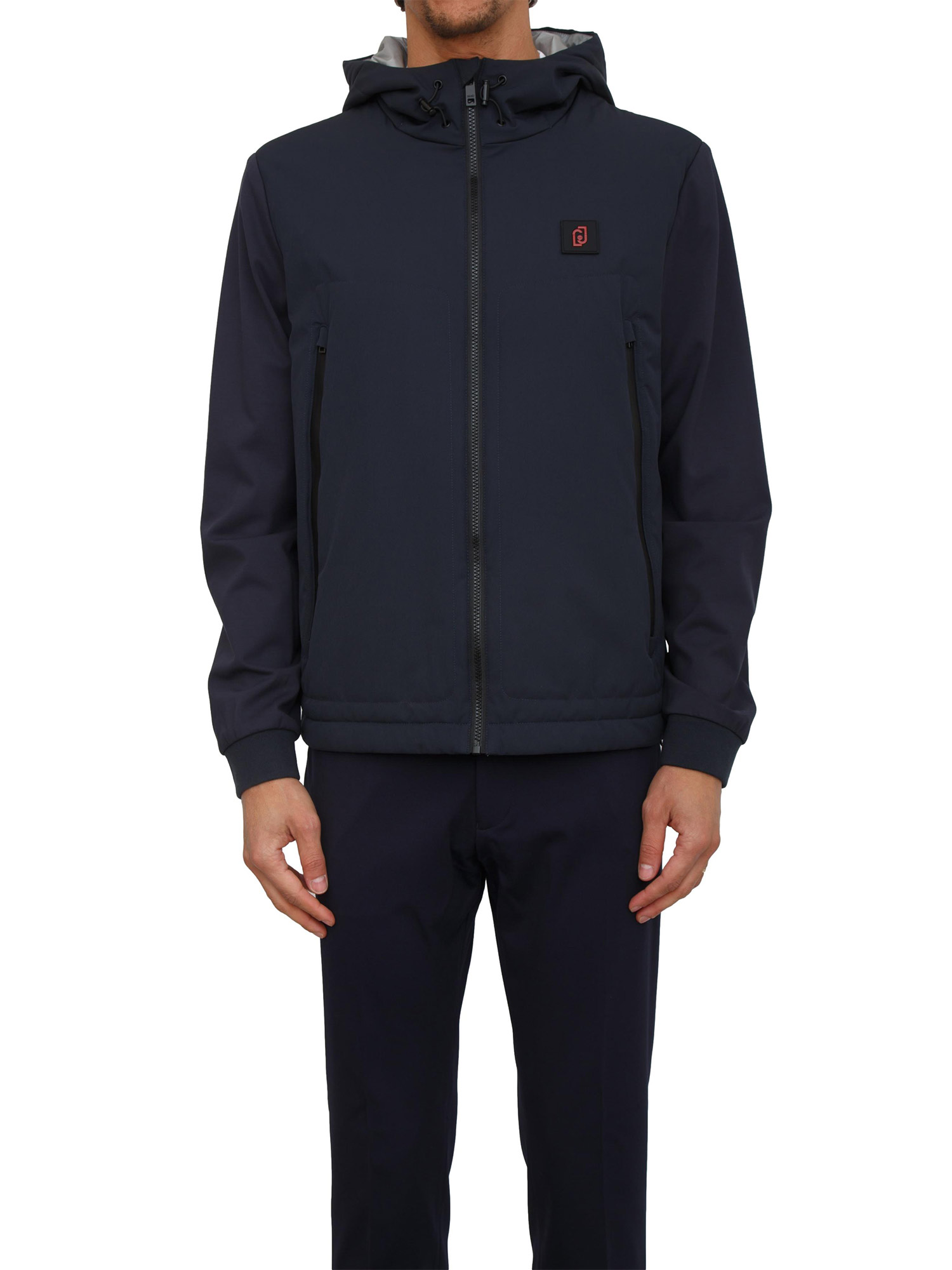 Giubbino Liu Jo uomo realizzato in nylon con cappuccio con coulisse e vestibilità dritta. Polsi con elastico, comode tasche laterali e patch logo a contrasto sul petto. Il modello è alto 1.90m e indossa la taglia L.