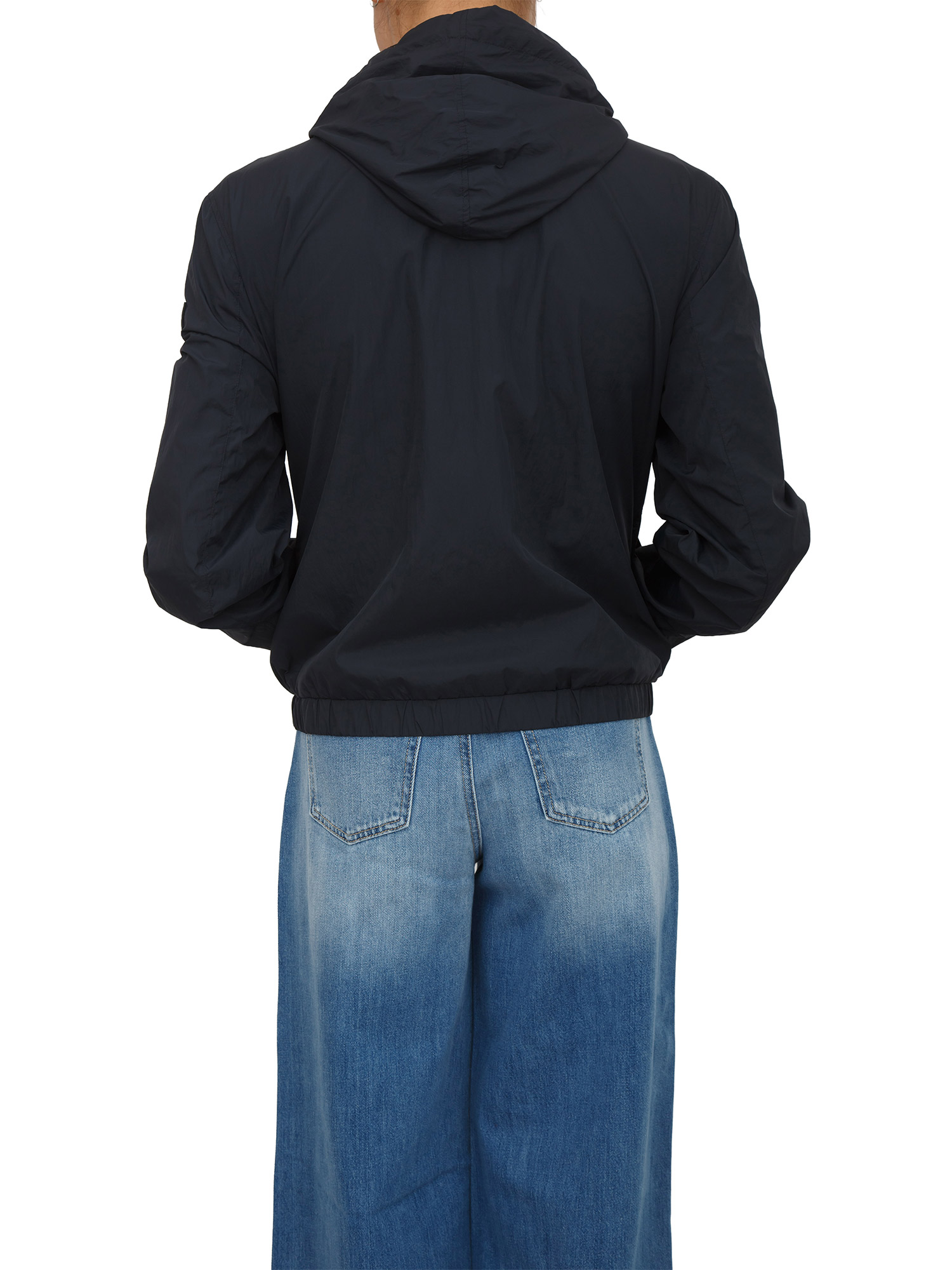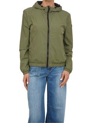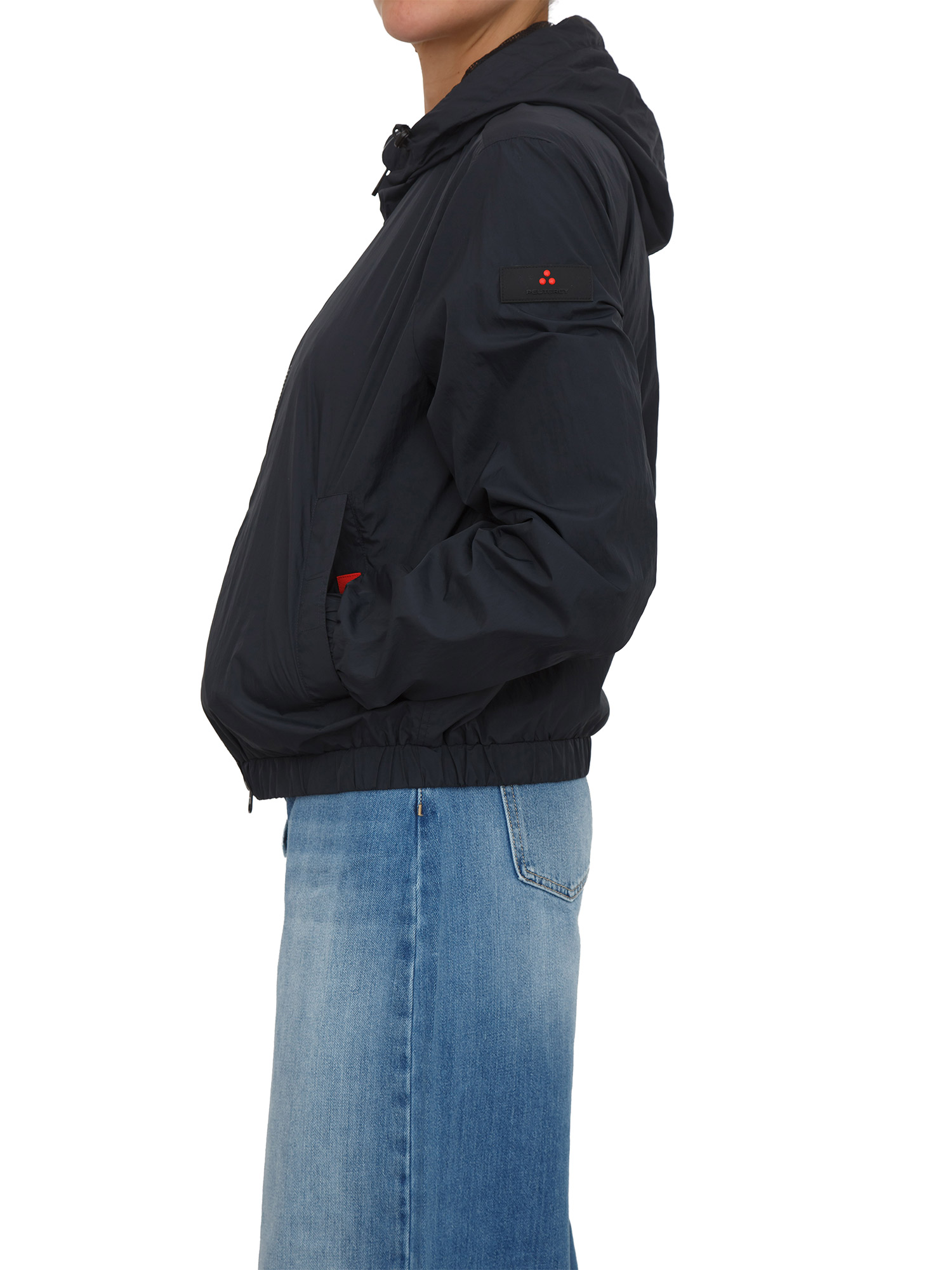 Giubbino Peuterey donna in tela di nylon super leggera dalla mano fluida e tecnica. Design idrorepellente e antivento, foderato con un tessuto in rete traspirante. Dotato di cappuccio fisso e polsini elasticizzati per un comfort ottimale con chiusura zip centrale a doppio cursore e tasche a filetto con bottone.