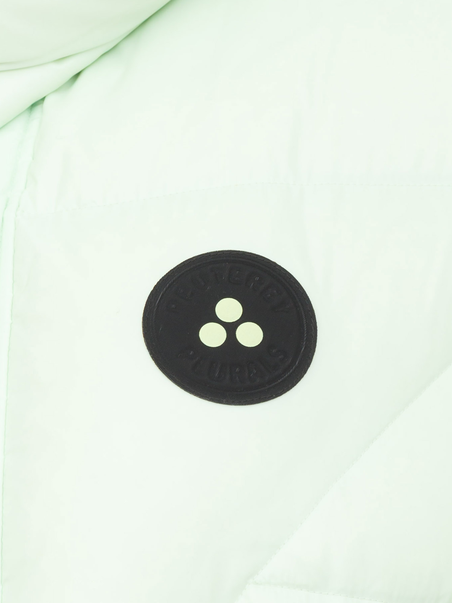 Giubbino unisex Peuterey con maxi trapunte, realizzato in nylon lakkè lucido idrorepellente con imbottitura in piuma naturale. Cappuccio con bottoni a pressione, chiusura zip coperta da patta, coulisse in vita e maxi logo tondo sul petto. Una collaborazione esclusiva con Tony Effe, per un guardaroba dal carattere forte e riconoscibile. La modella è alta 1.72 e indossa la taglia S.