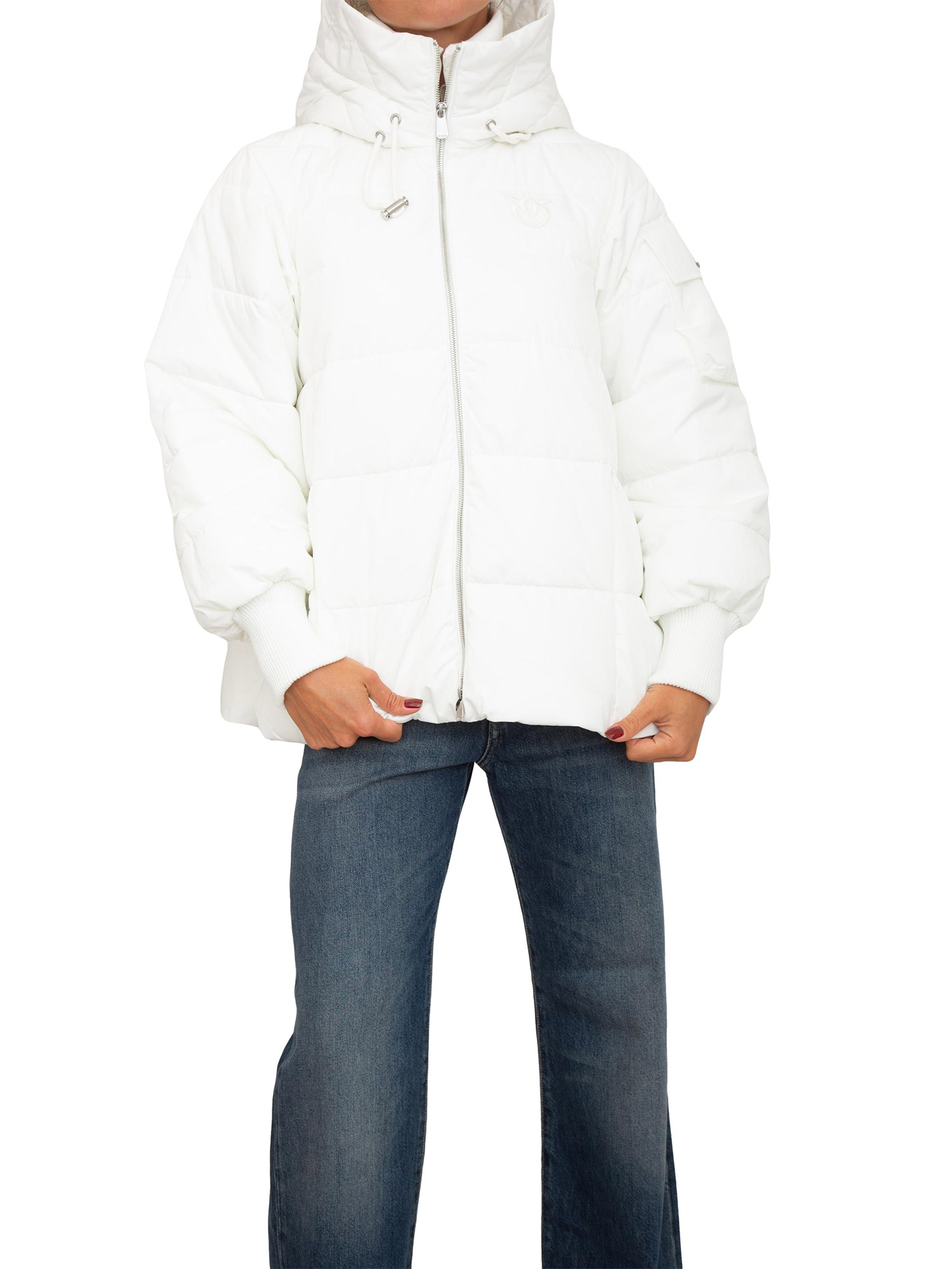 Giubbino Pinko in tessuto tecnico bianco opaco e cappuccio