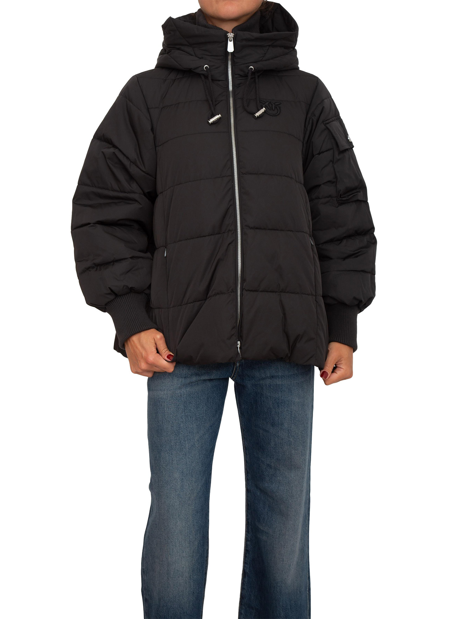 Giubbino Pinko in tessuto tecnico nero opaco e cappuccio