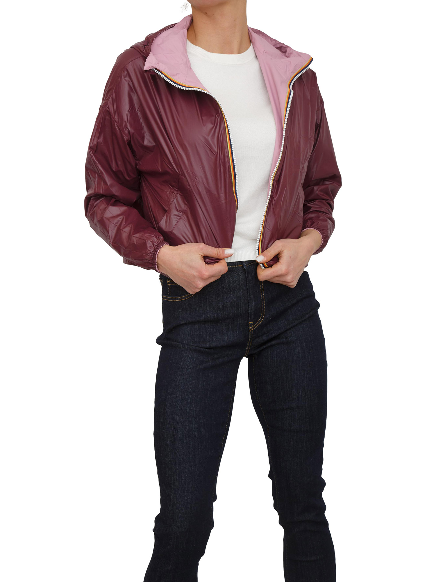 Giubbino reversibile Laurette K-WAY donna in tessuto rosa e purple