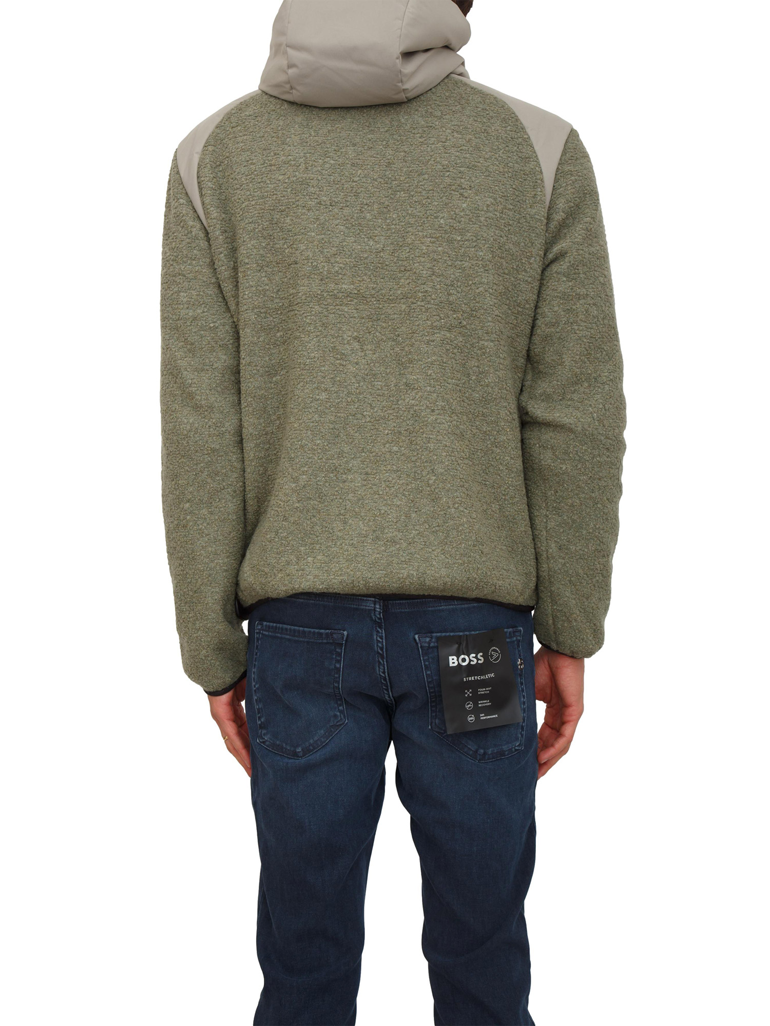 Bauges è un giubbino K-Way utilizzabile come midlayer tecnico in inverno e sulla neve. Indossabile da solo o sotto la giacca da sci in base alle condizioni climatiche, è realizzato in tessuto Polar misto lana effetto sherpa con inserti in tessuto tecnico impermeabile ed è dotata di cappuccio avvolgente con bordo elasticizzato. Il modello è alto 1.90m e indossa la taglia L.
