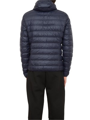 Piumino con imbottitura in piuma d'oca con il tessuto tecnico. Il modello è dotato di chiusura frontale con zip, cappuccio fisso, due pratiche tasche laterali ed è personalizzato dal logo EA7 a contrasto sul petto. Il capo è packable e può essere richiuso nella sua dust bag.