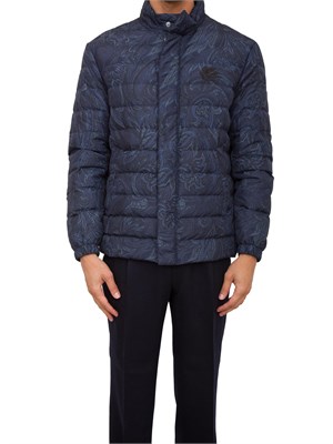 Piumino Etro imbottito realizzato in nylon trapuntato a righe e decorato da una stampa Paisley all over. Il modello è impreziosito da logo ETRO e Pegaso ricamati sul petto. Vestibilità regular, chiusura con bottoni a pressione e cerniera a doppio cursore e tasche laterali a filetto.
