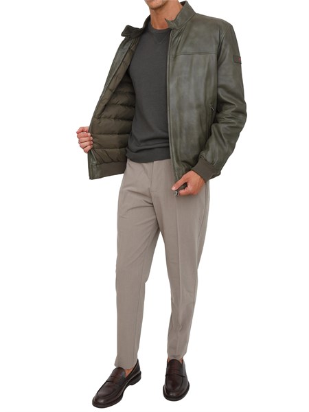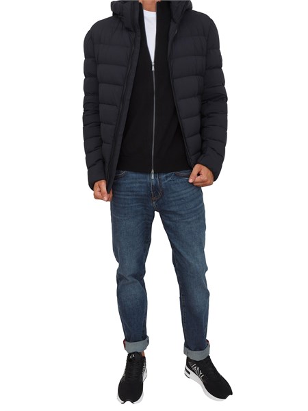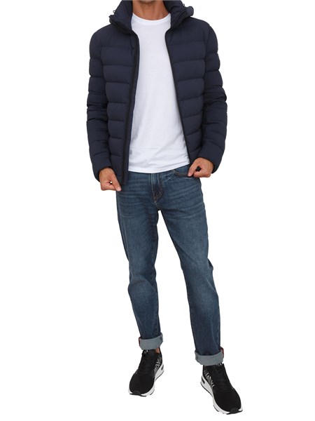 Piumino in nylon ripstop, con trapunte orizzontali. Chiusura con zip a doppio cursore e apertura a filetto per le tasche, con profili in contrasto colore.