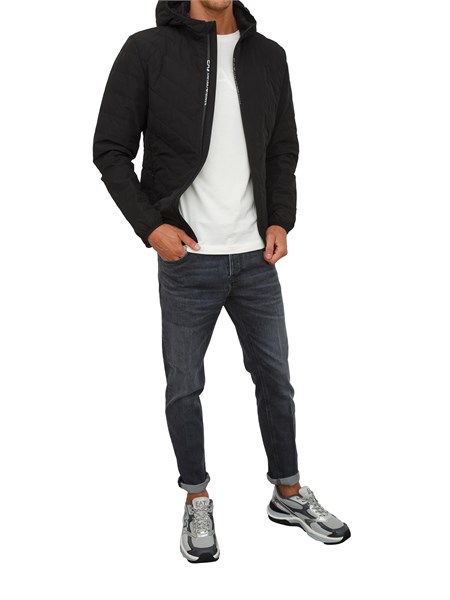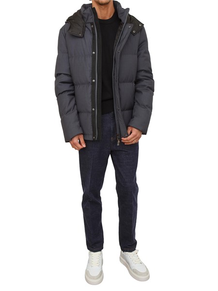 Giacca corta realizzata in tela di poliestere stretch accoppiata con un jersey di poliestere soffice e caldo, grazie alla finezza dei filati utilizzati. Il design essenziale e curato include doppia zip centrale pensata per regolare il capo e aggiungere praticità, tasche laterali a filetto, polsini antivento in maglina nera e cappuccio con tiranti regolabili, per una protezione ottimale.