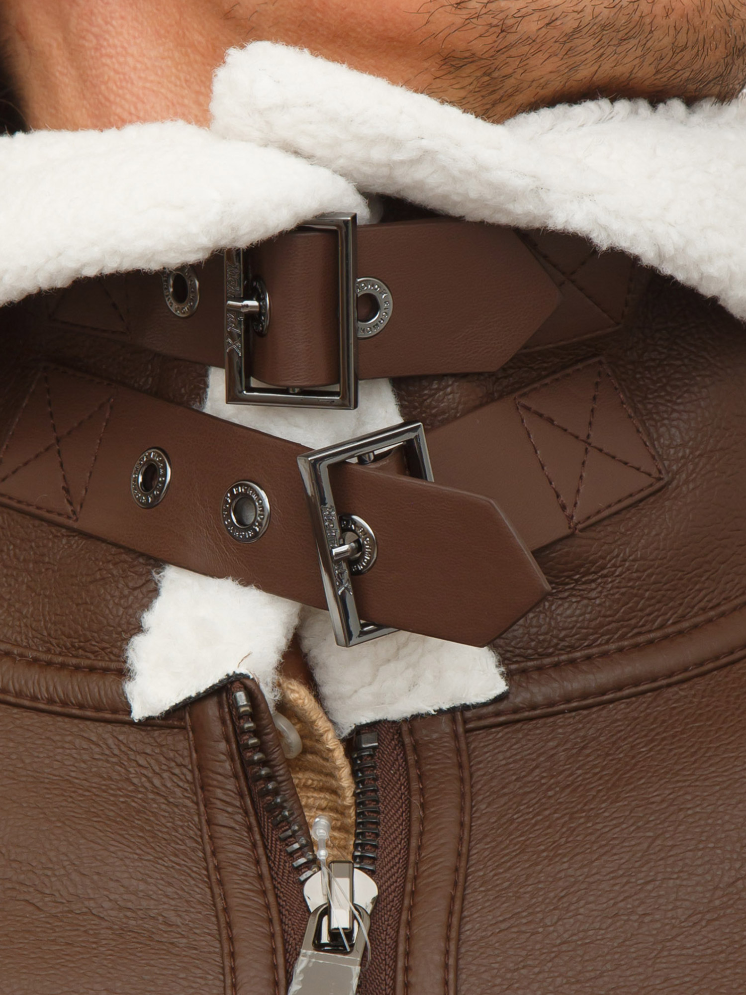 Giubbotto biker marrone Richmond X uomo con collo in pelliccia sintetica