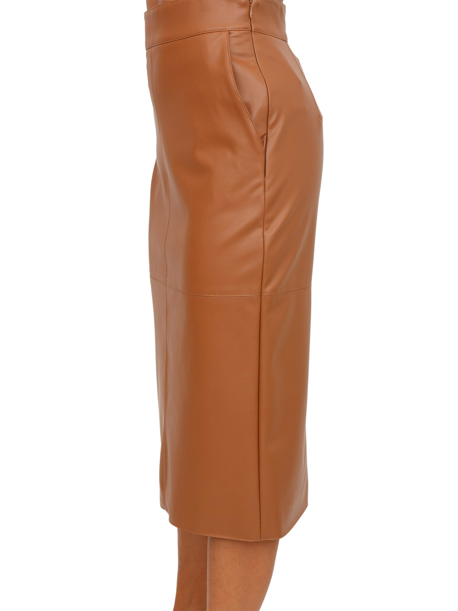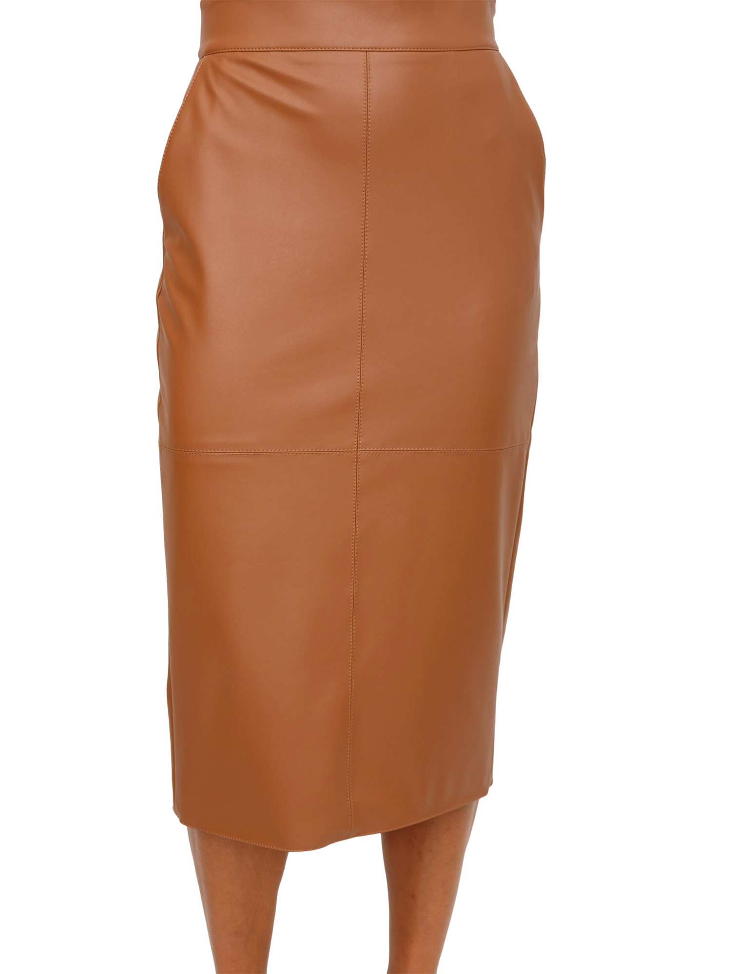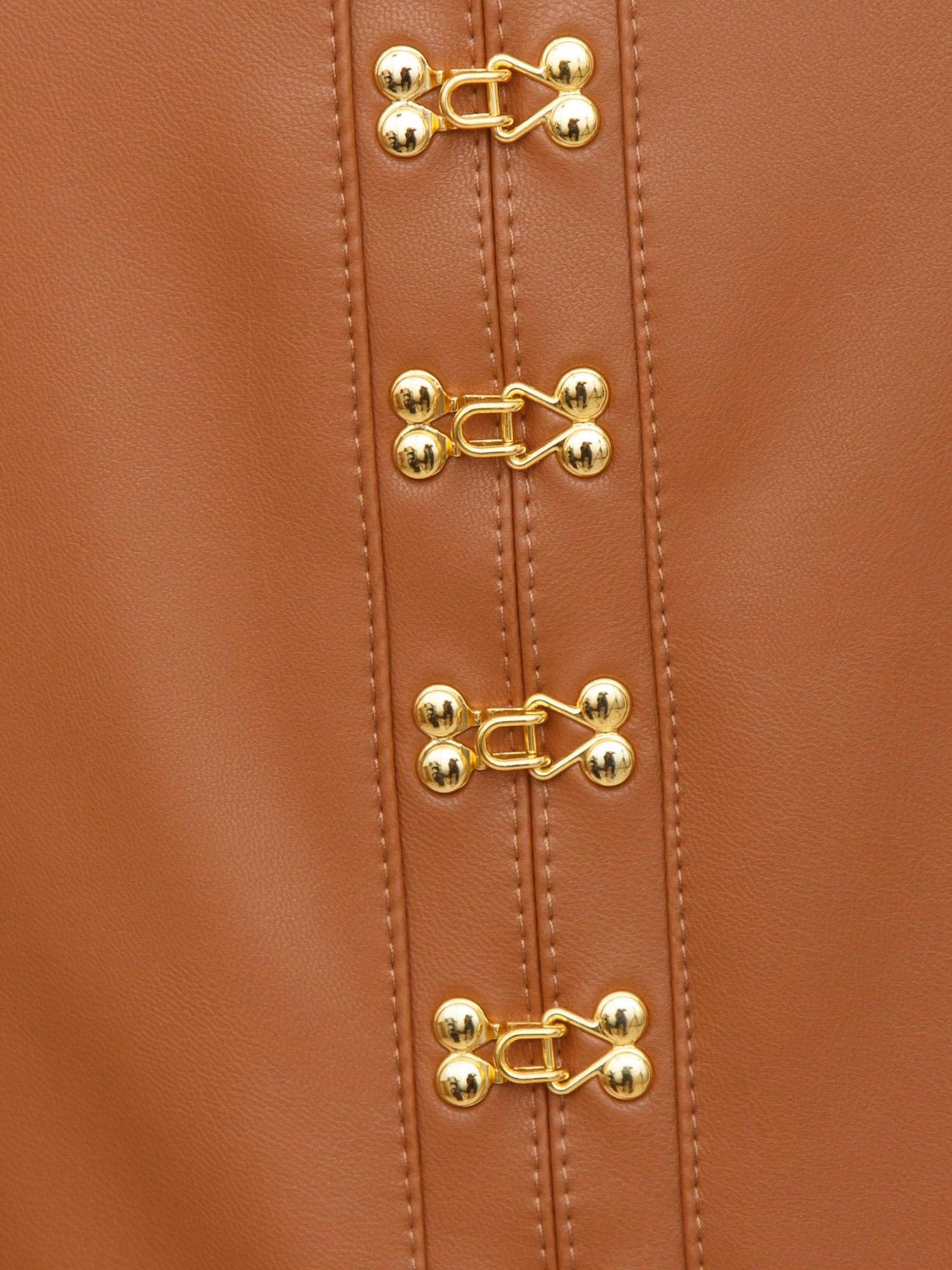 Gonna a tubino Elisabetta Franchi in ecopelle cuoio con ganci gioiello