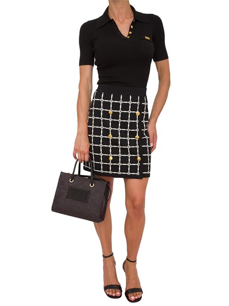 Gonna in twill di pura seta caratterizzata da una silhouette svasata e listino alto in vita in tessuto double.