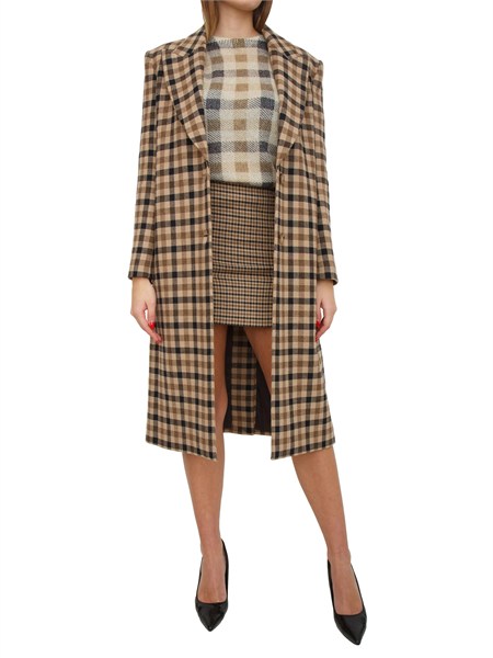 Gonna Elisabetta Franchi in doppio crêpe con vestibilità aderente. Arricchita da cintura in catena con nappina realizzata in metallo dorato e patte decorate da bottoni smaltati con logo e pattern snake. La modella è alta 1.72 e indossa la taglia 40.