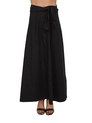 Gonna "Ginestra" Fracomina in misto cotone con taglio dritto e pulito per un look estivo fresco e ricercato. Design con cintura coordinata in vita con nappa decorativa finale, che sottolinea la silhouette con eleganza. Linea essenziale e volumi fluidi. La modella è alta 1.72 e indossa la taglia 42.