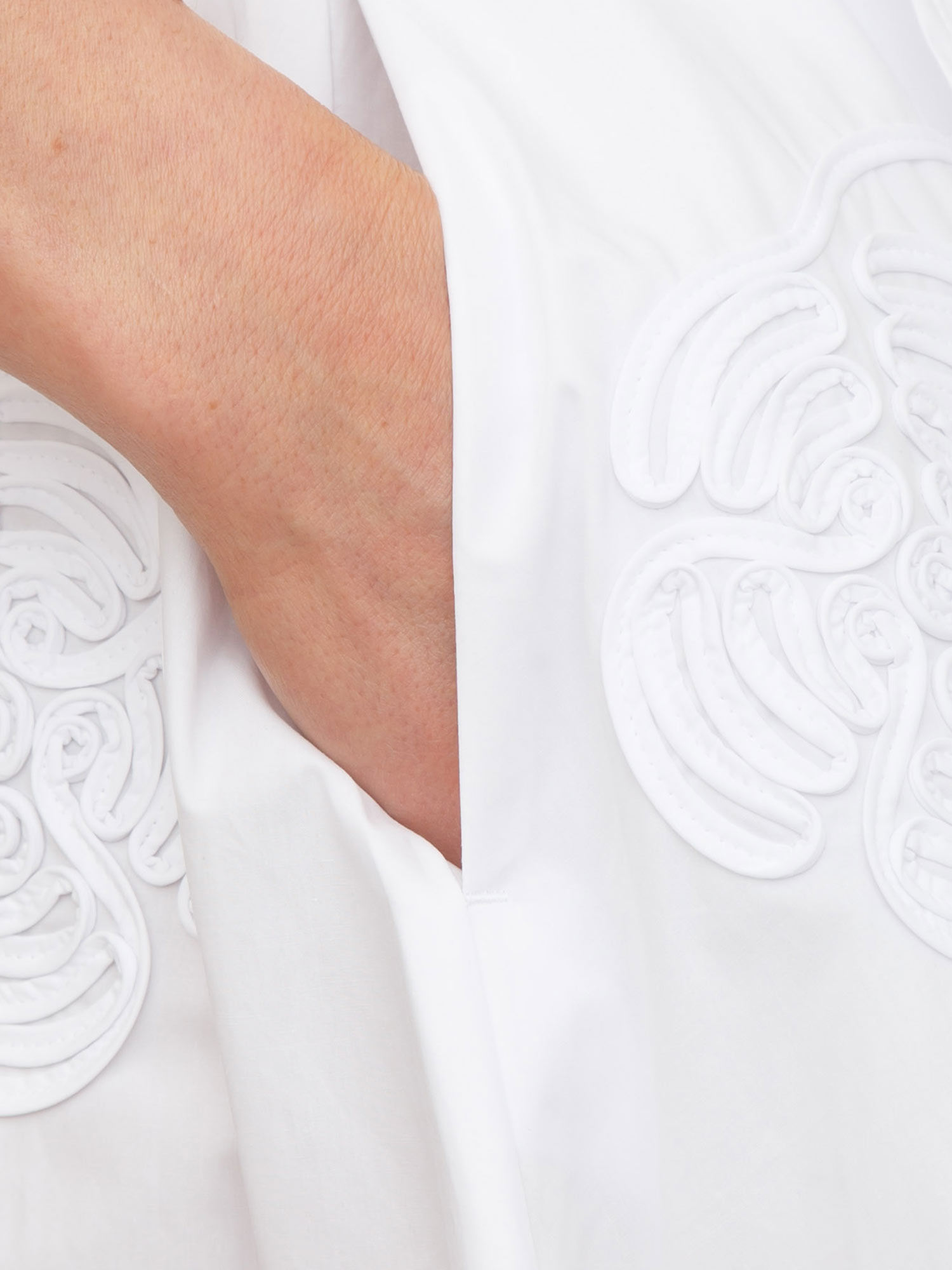 Questa gonna Liu Jo conquista con un ricamo a rilievo che sembra disegnato a mano sul tessuto. Lo spacco dona leggerezza alla silhouette, soprattutto con sandali sottili o slingback essenziali. Filato di puro cotone con ricamo effetto 3D e chiusura zip dietro. La modella è alta 1.72 e indossa la taglia 38.