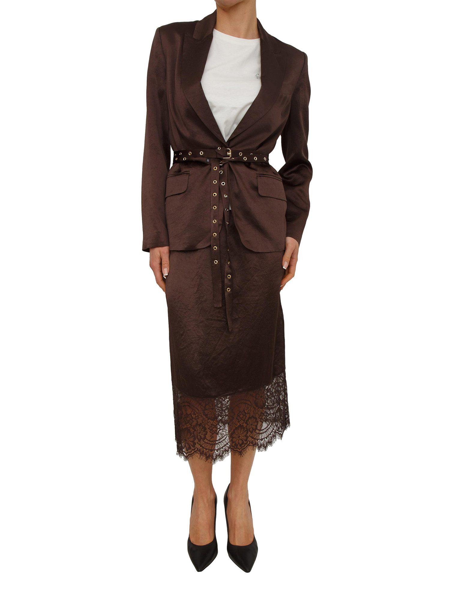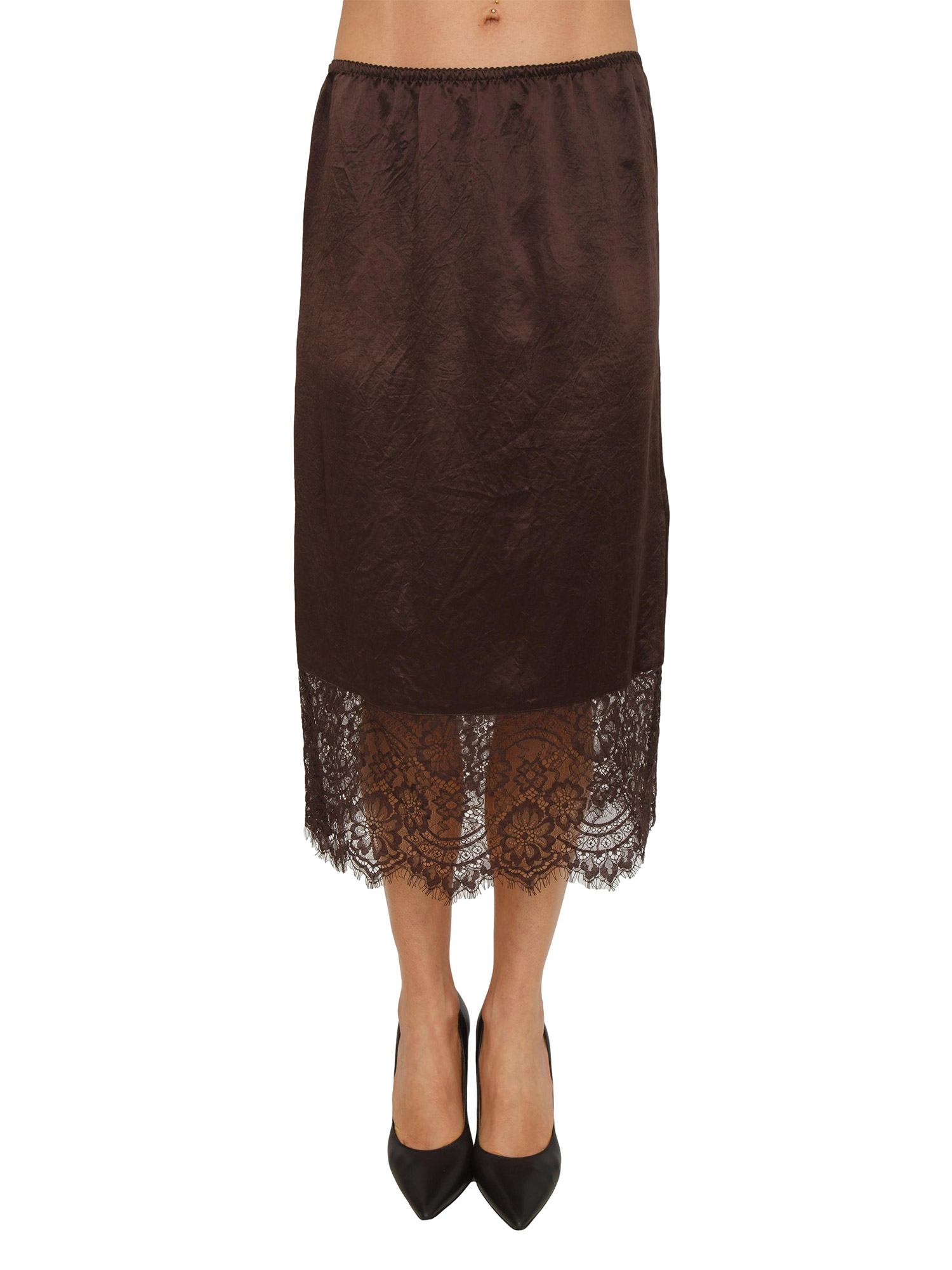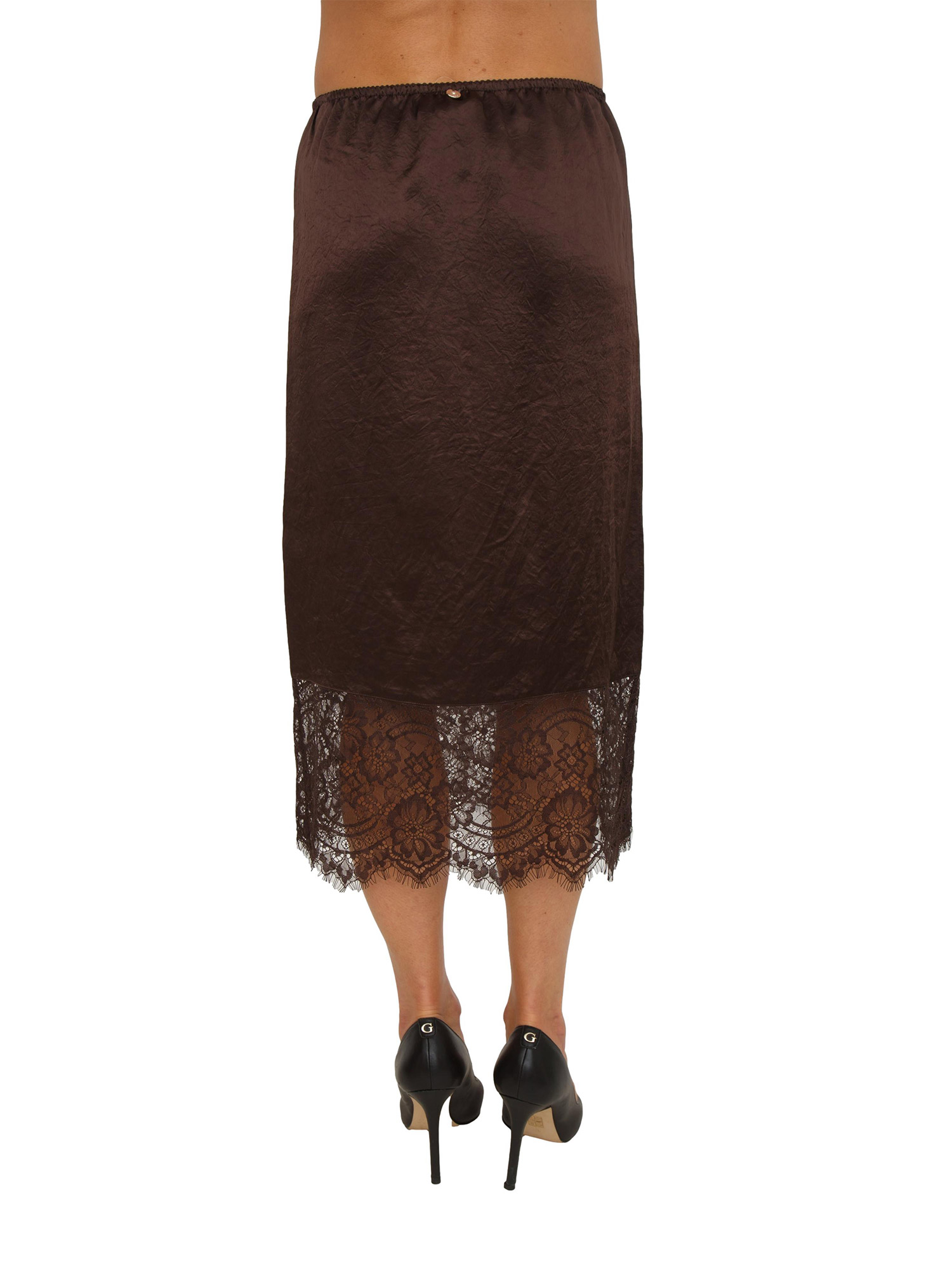 Gonna longuette Liu Jo in raso wrinkle marrone con pizzo