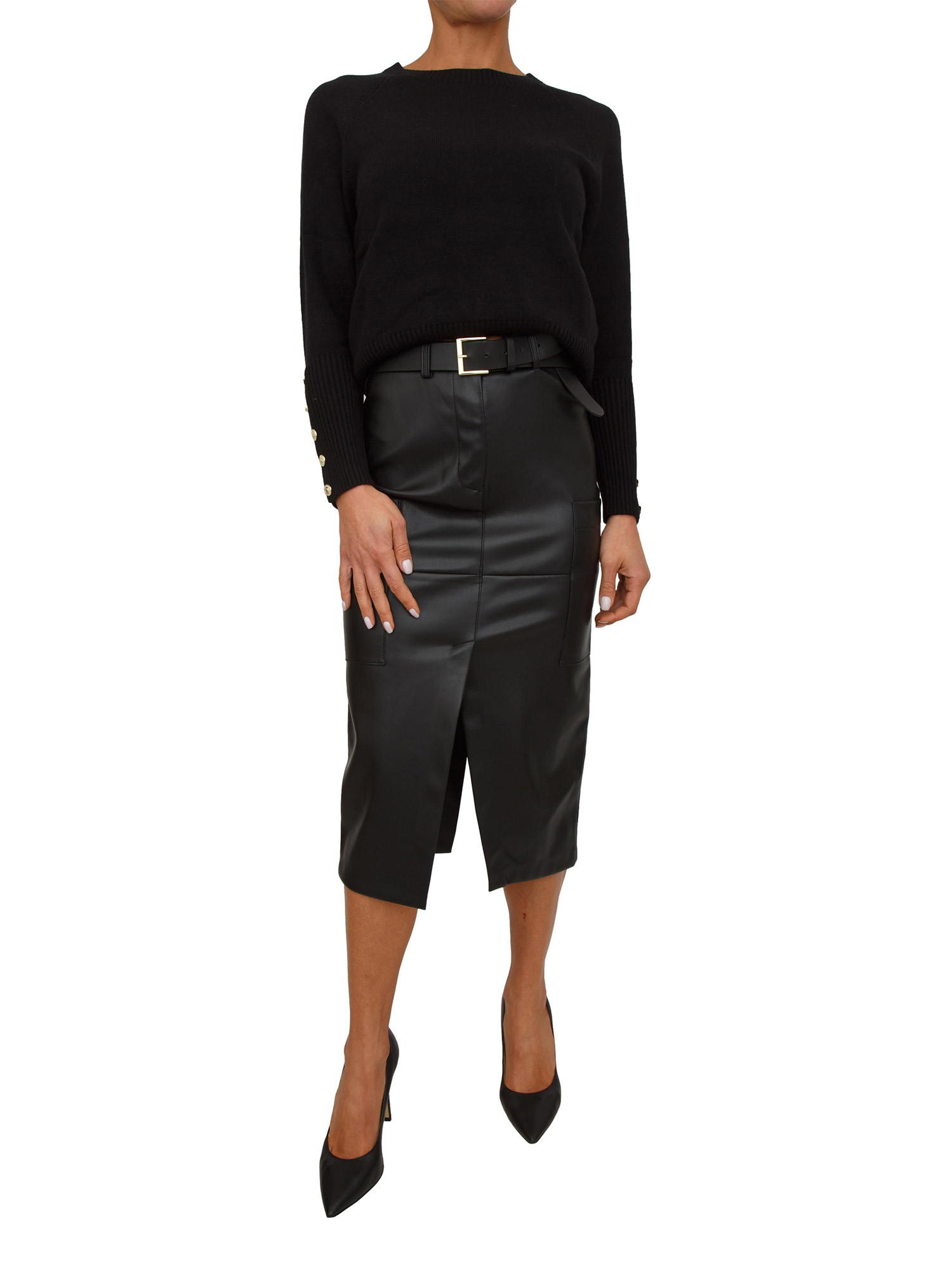 Il tessuto in ecopelle regala a questa gonna longuette Maderin di Kocca grinta e carattere. Elegante e versatile, presenta uno spacco e ampie tasche sul davanti, chiusura con zip e cintura in vita. La modella è alta 1.72 e indossa la taglia 38.
