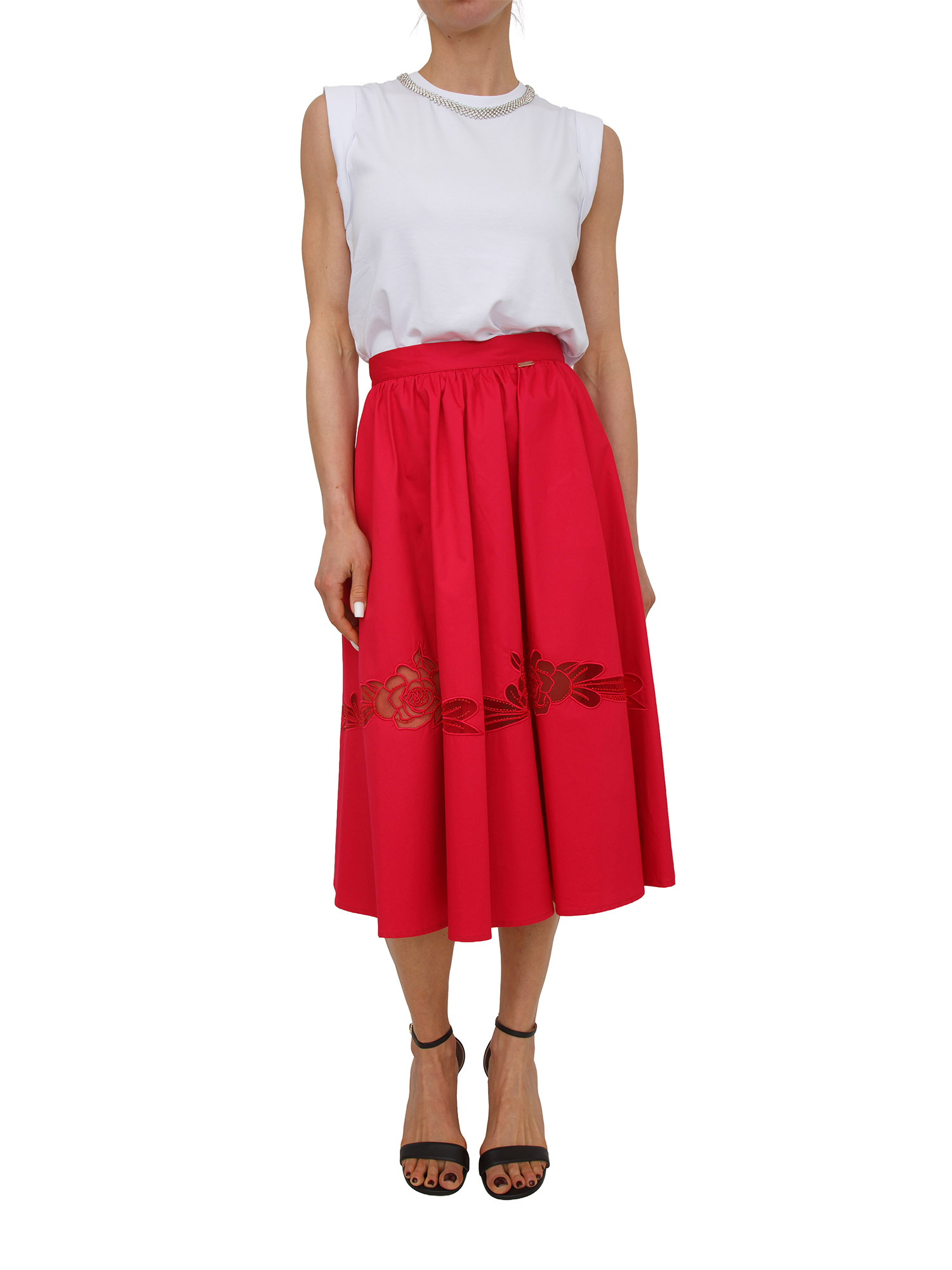 Gonna midi Fracomina in cotone fuxia ricamo fiore