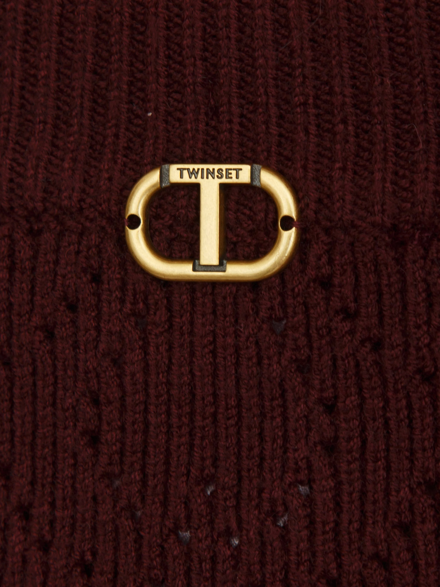 Gonna Twinset in misto viscosa con lavorazione compatta e disegni piazzati. Design con elastico in vita, fondo smerlato e placchetta logo Oval T sul retro. Fit aderente che salta la silhouette e la femminilità. La modella è alta 1.77 e indossa la taglia S.