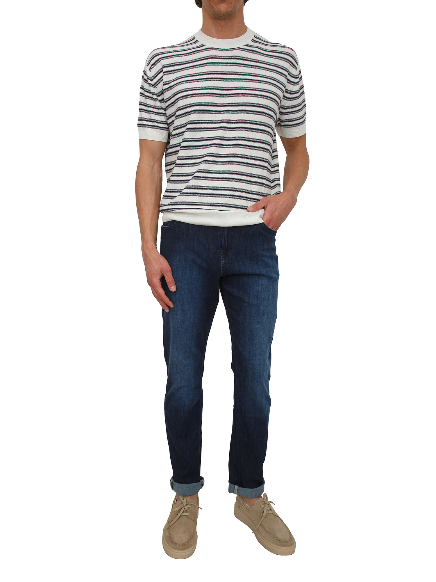 2. Jeans "Milano" Richard J. Brown realizzato in denim stretch di cotone e lino con vestibilità regular per l’uomo che desidera un look più tradizionale. Le rifiniture, come il punto a mano sulle tasche posteriori tono su tono e la salpa in pelle, ne esaltano il carattere rendendolo sofisticato e mai banale.