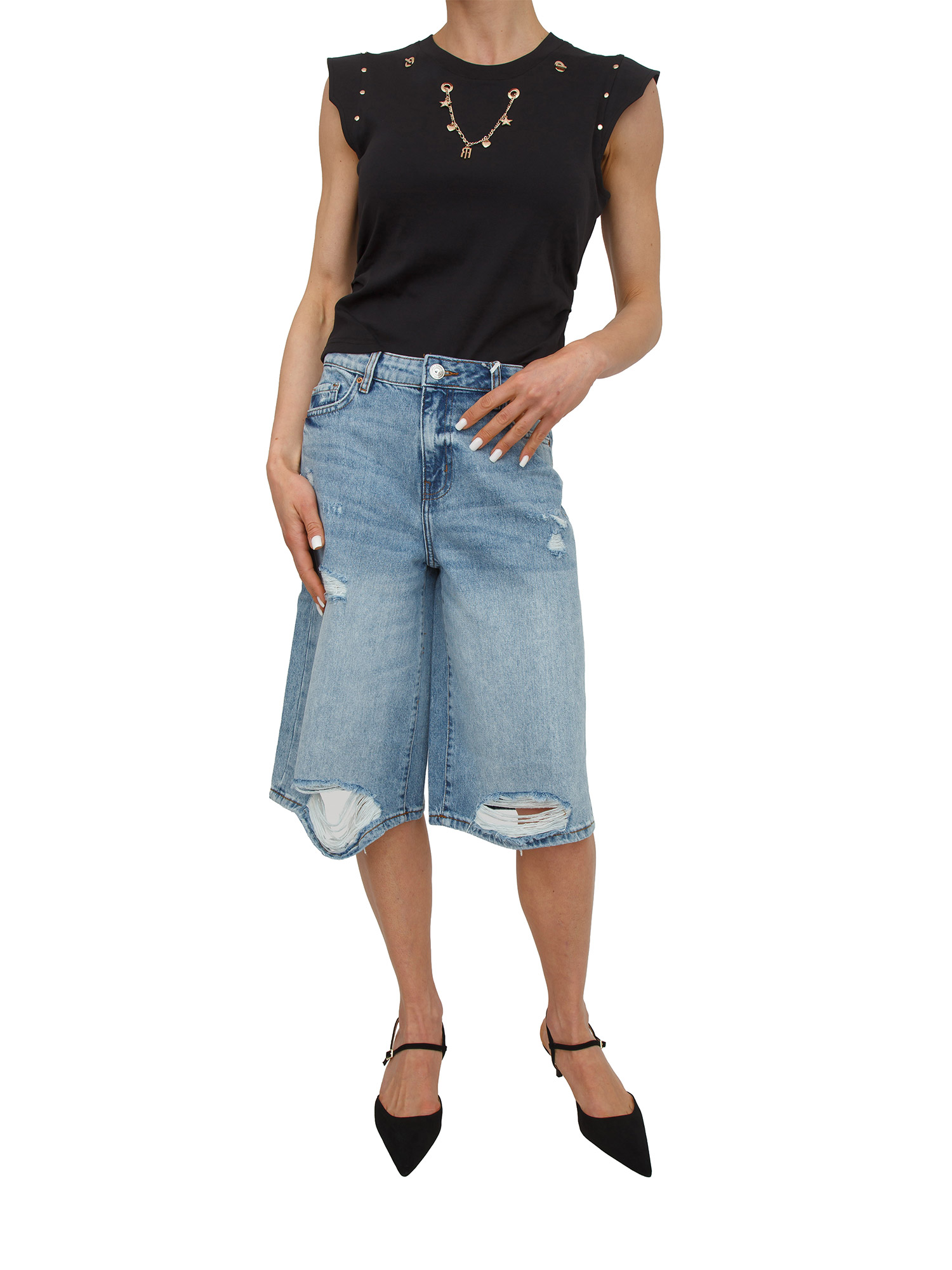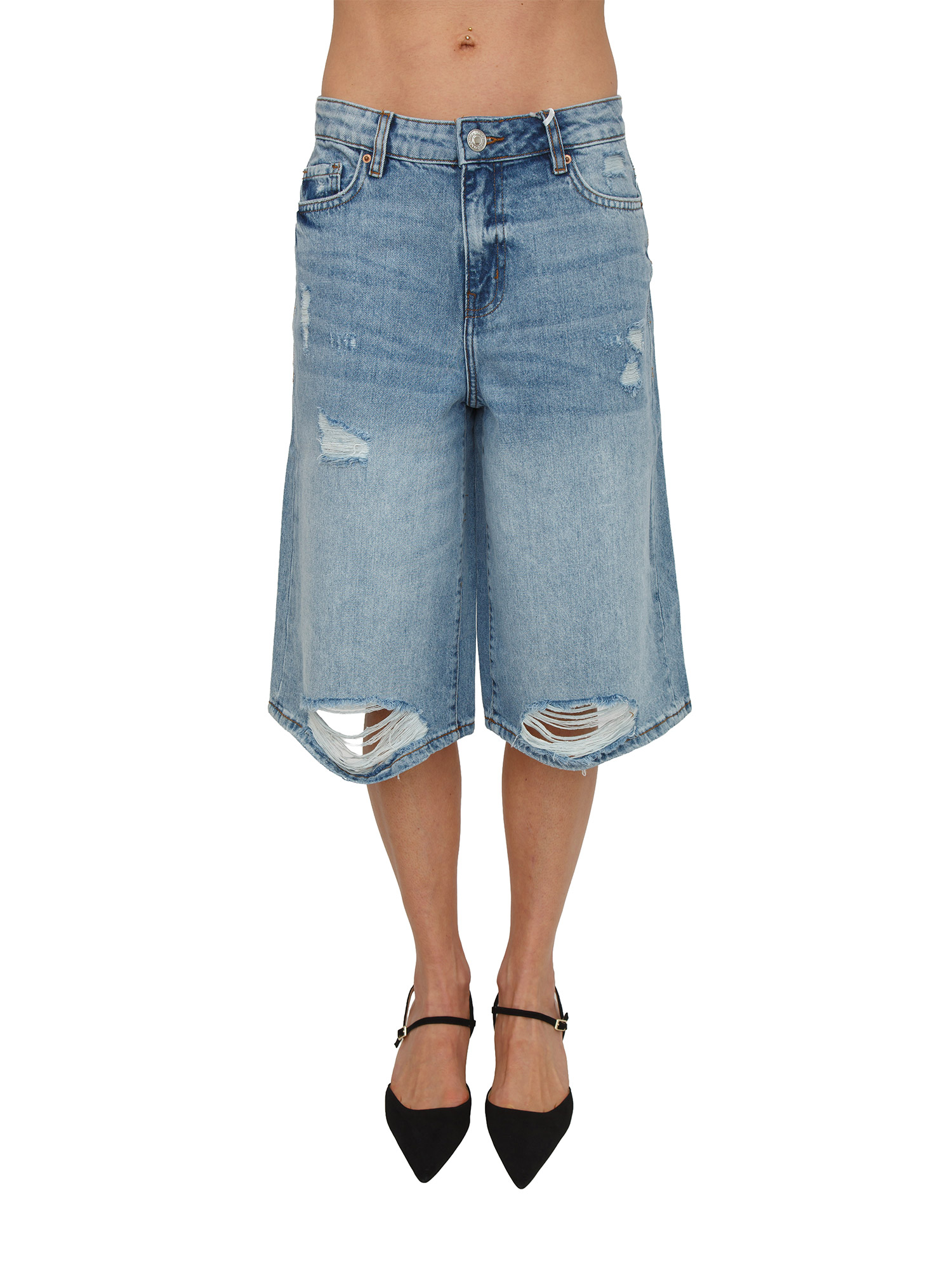 Jeans bermuda Fracomina in denim lavaggio medio e strappi