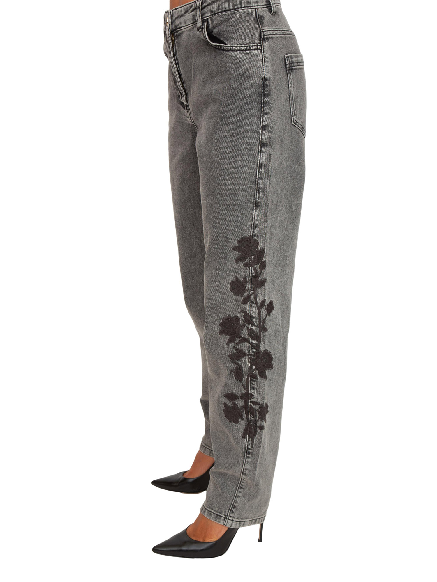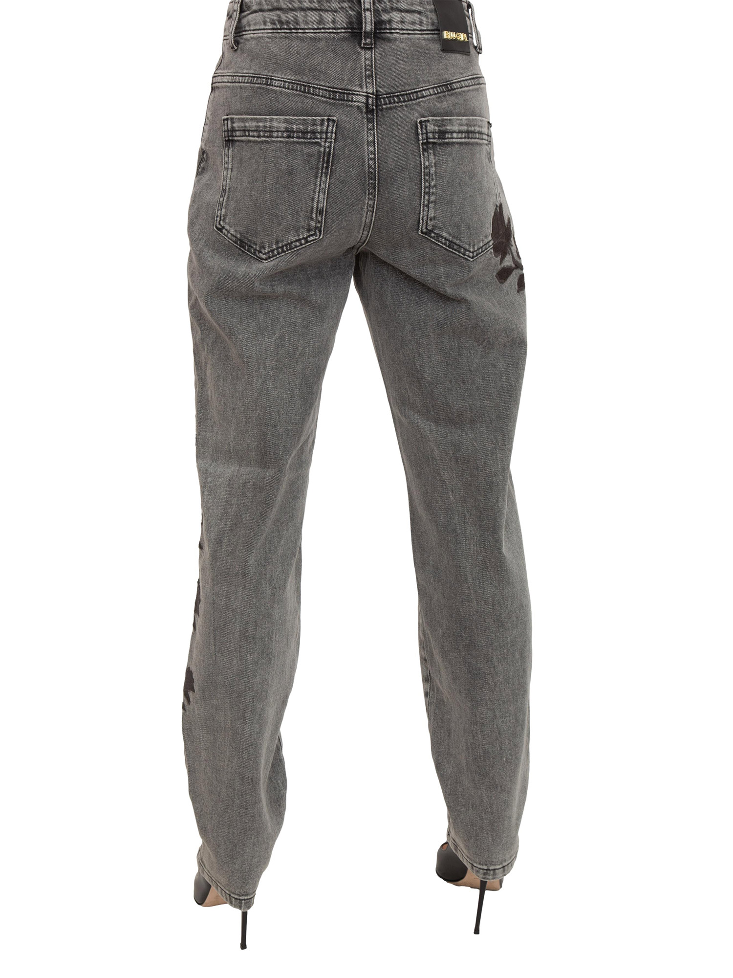 Jeans Blugirl in denim stretch grigio con ricamo floreale