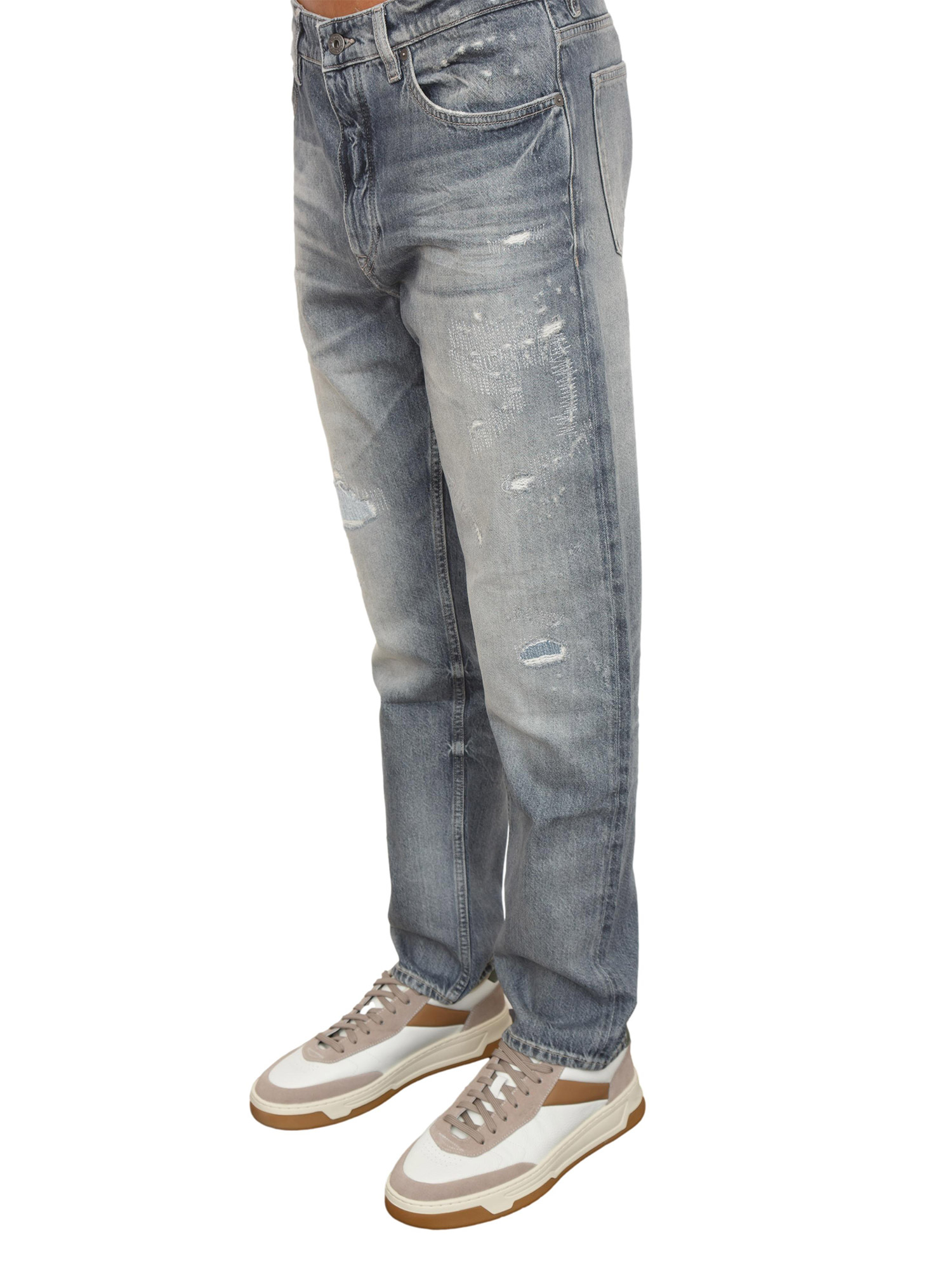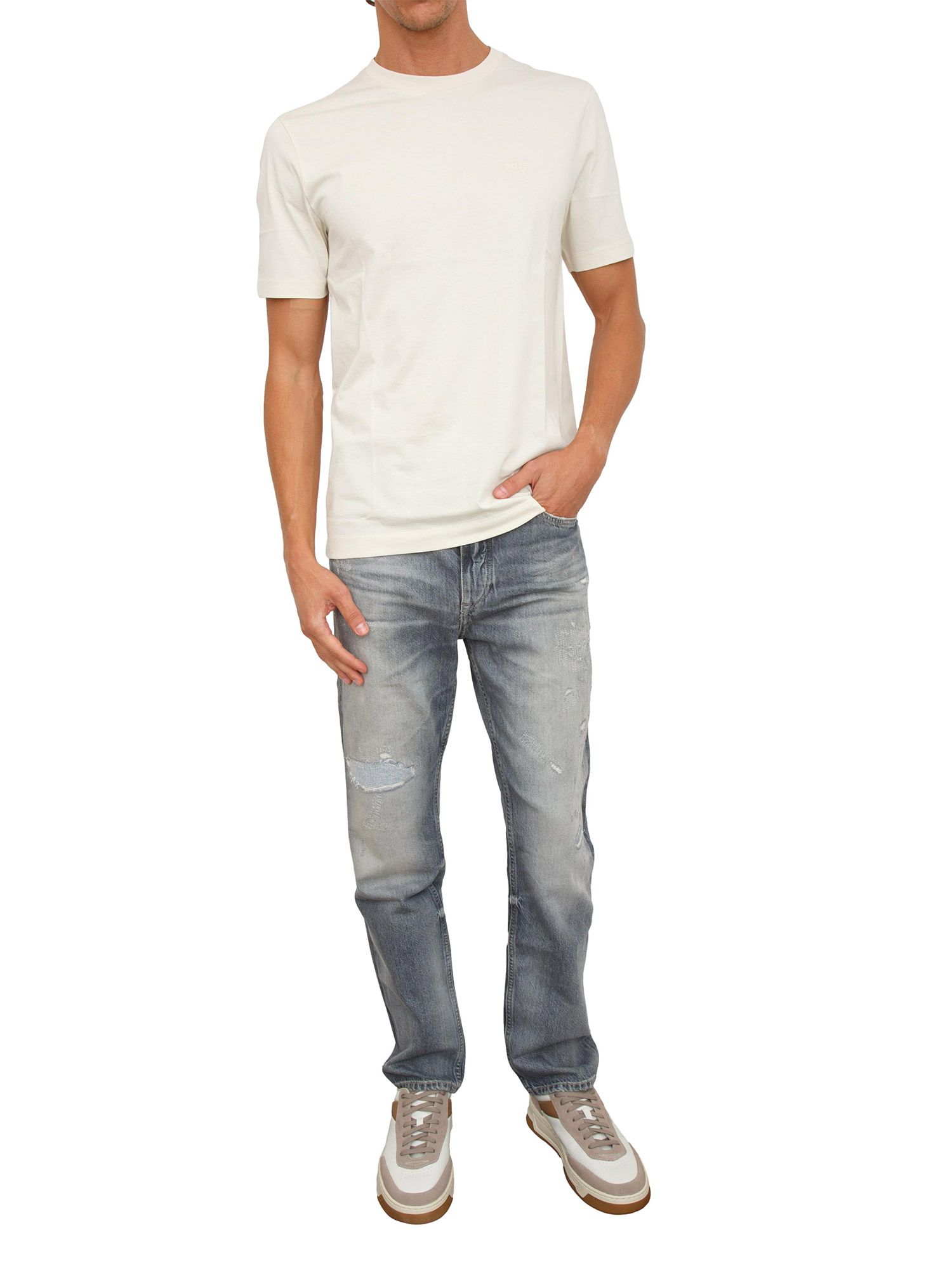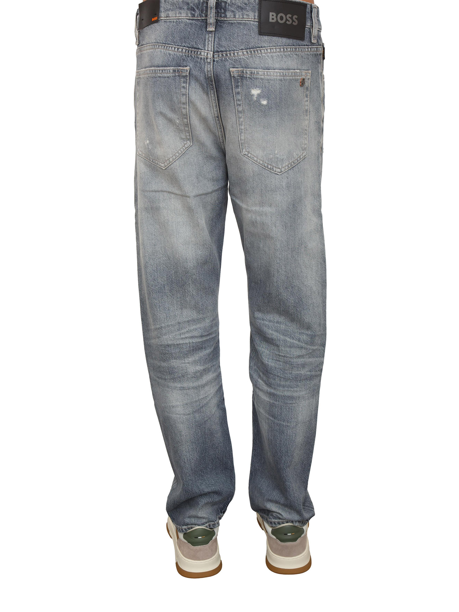 Jeans Boss uomo in cotone grigio con dettagli used