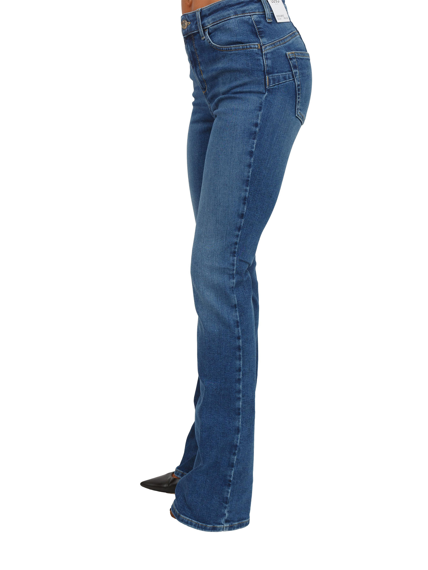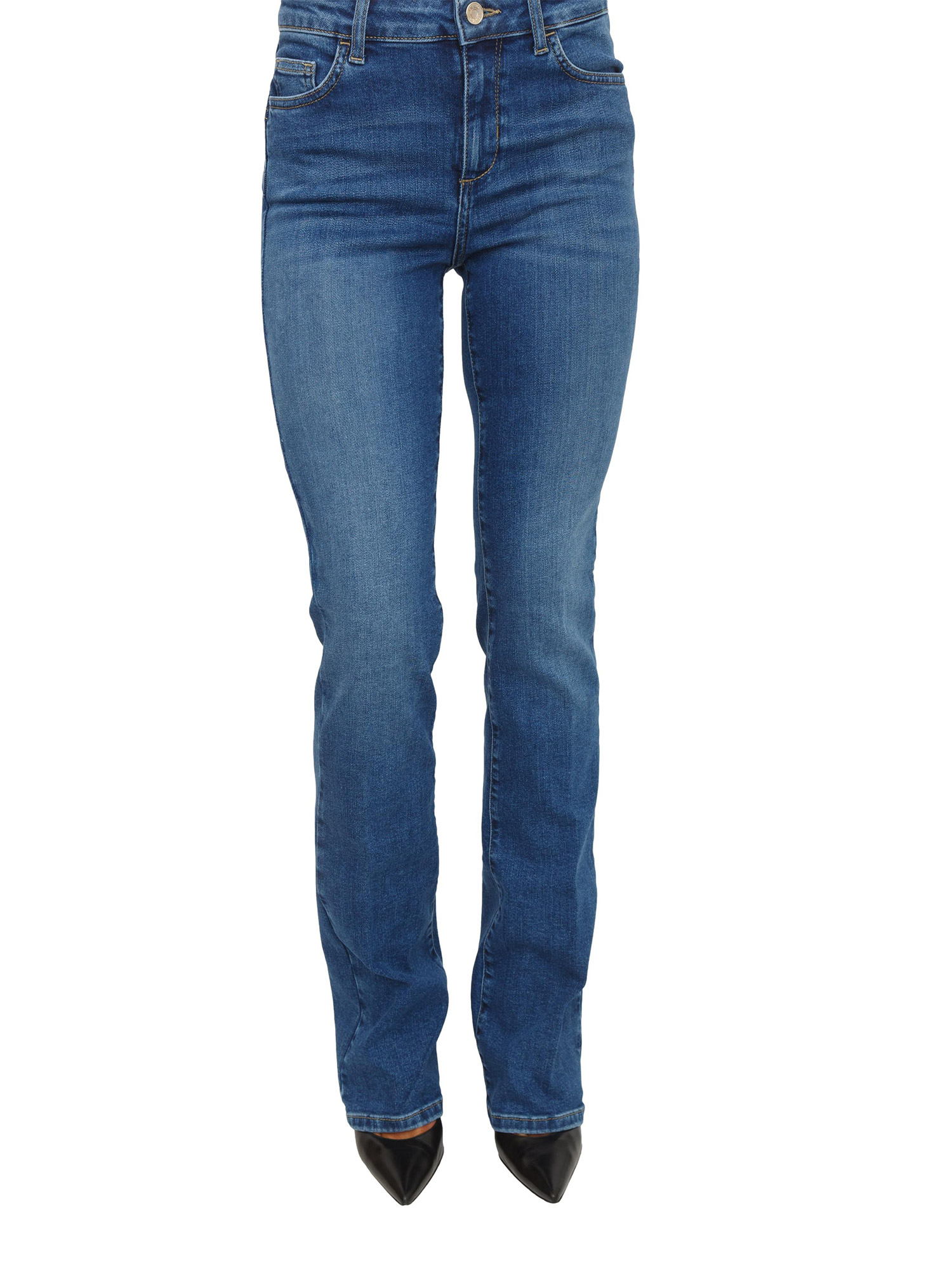 Jeans Liu Jo donna realizzati in denim di misto cotone stretch con vita alta e gamba slim larga in fondo. Modello bottom up che esalta le forme con eleganza e chiusura zip con bottone.